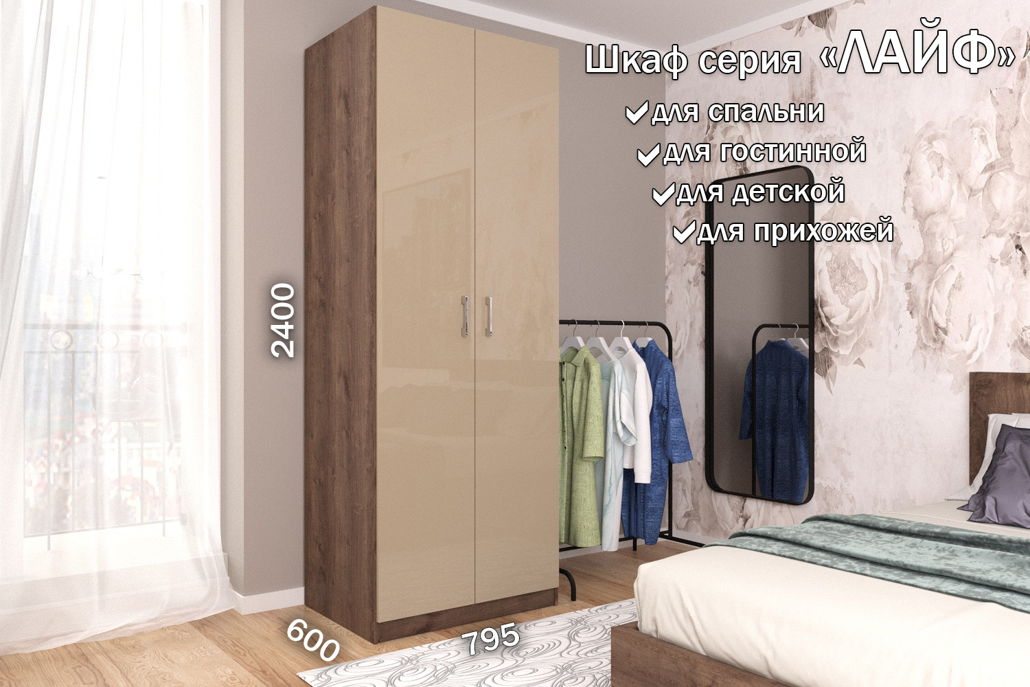 Отзывы о Столплит Распашной шкаф Лайф для одежды 80*60*240 Дуб экспрессив Бежевый