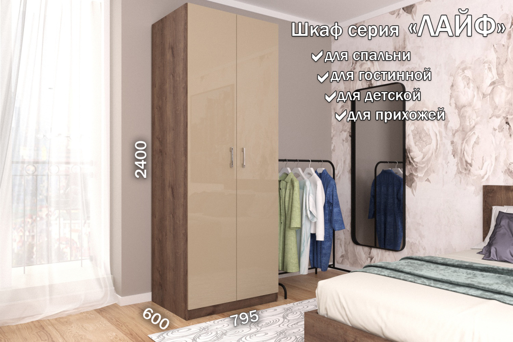 Распашной шкаф Лайф для одежды 80*60*240 Дуб экспрессив (Бежевый)