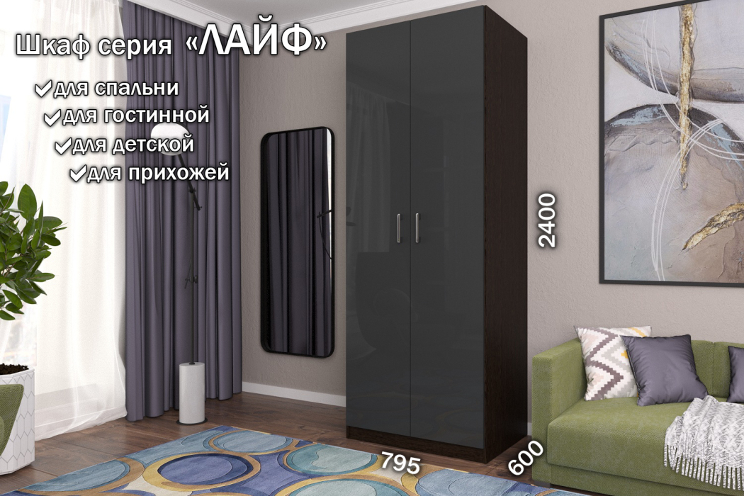 Отзывы о Столплит Распашной шкаф Лайф с полками 80*60*240 Венге Антрацит
