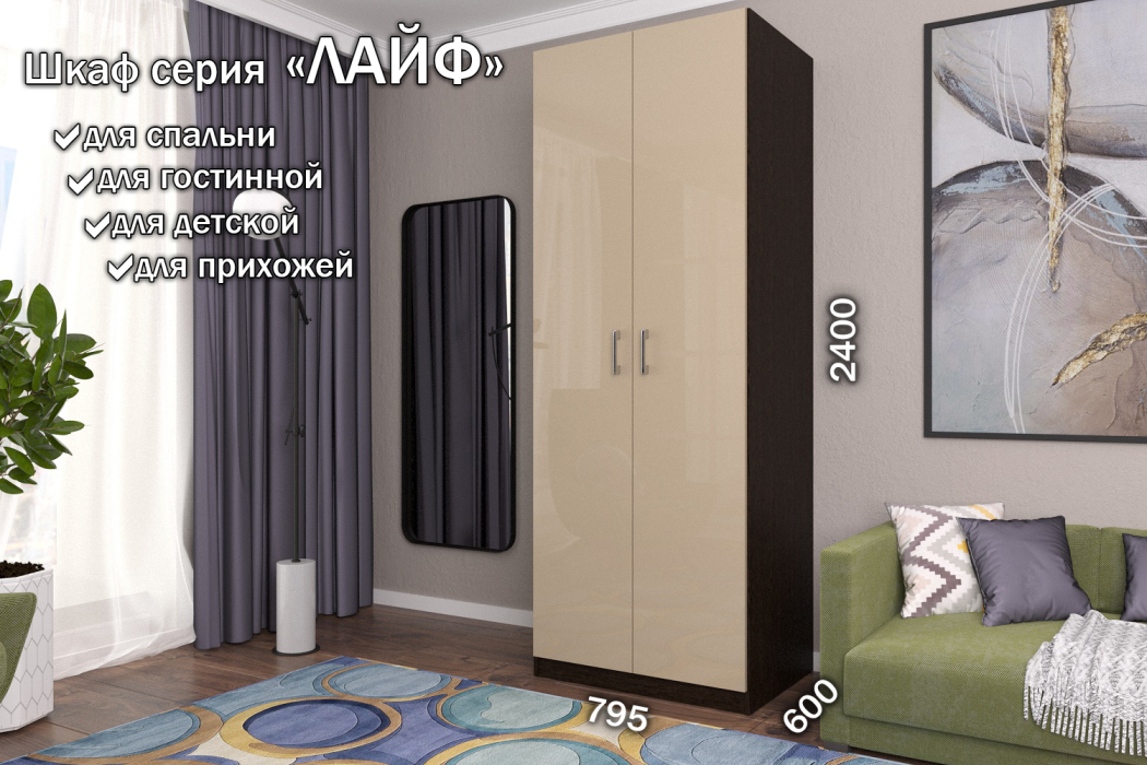 Отзывы о Столплит Распашной шкаф Лайф с полками 80*60*240 Венге Бежевый