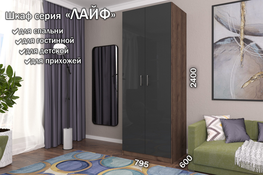 Отзывы о Столплит Распашной шкаф Лайф с полками 80*60*240 Дуб экспрессив Антрацит