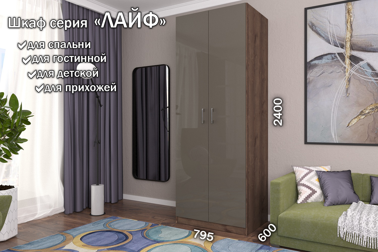 Отзывы о Столплит Распашной шкаф Лайф с полками 80*60*240 Дуб экспрессив Латте