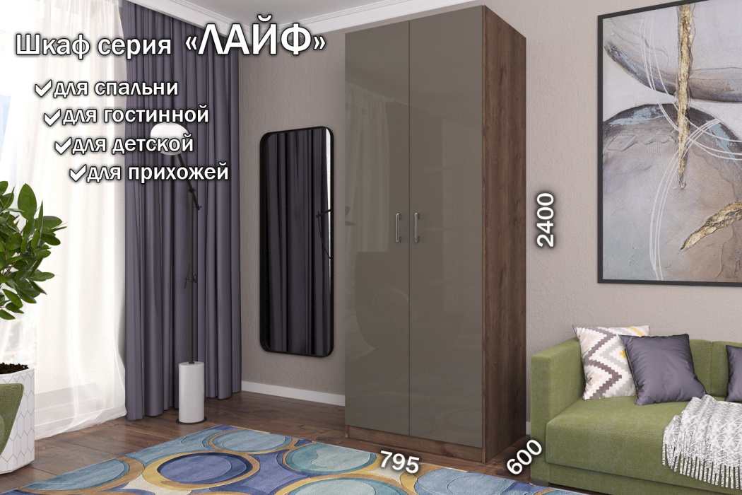 Стильные и удобные корпусные шкафы и наборные корпусные элементы «Лайф» – одно из самых выгодных предложений серийной мебели. Уникальностью данных шкафов, является возможность вносить изменения при сборке. Внутренние детали крепятся на эксцентриках, что позволяет в момент сборки изделия менять секций местами, это дает возможность выбрать максимально удобное расположение. Отличительные особенности шкафов «Лайф» – качественные материалы, удобная комплектация внутреннего наполнения и отличная фурнитура, которая обеспечивает долговечность использования и дает простоту и надежность сборки. Данная серия может комбинироваться в любых четырех цветах на корпус изделия и в любых четырех цветах на фасады изделия на усмотрение и вкус покупателя. Используемые цвета корпуса: Венге, Дуб Сонома, Дуб Экспрессив бронзовый, Северное дерево. Используемые цвета на фасады изделия из материала МДФ Высокий глянец: Белый Бриллиант, Латте, Макиато, Антрацит