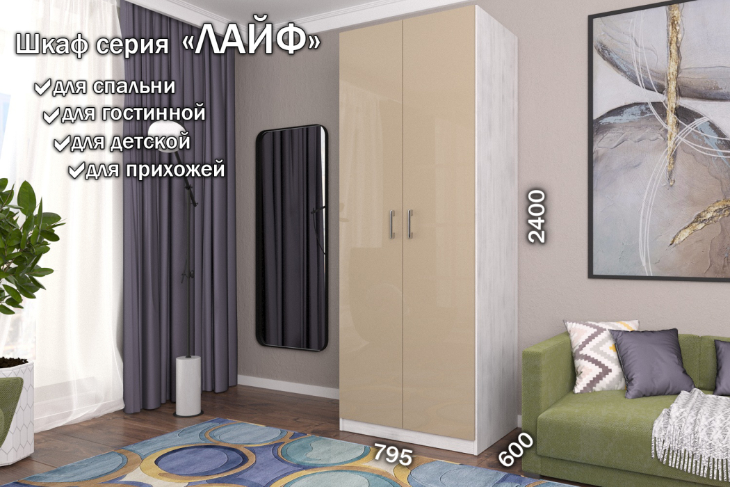 Стильные и удобные корпусные шкафы и наборные корпусные элементы «Лайф» – одно из самых выгодных предложений серийной мебели. Уникальностью данных шкафов, является возможность вносить изменения при сборке. Внутренние детали крепятся на эксцентриках, что позволяет в момент сборки изделия менять секций местами, это дает возможность выбрать максимально удобное расположение. Отличительные особенности шкафов «Лайф» – качественные материалы, удобная комплектация внутреннего наполнения и отличная фурнитура, которая обеспечивает долговечность использования и дает простоту и надежность сборки. Данная серия может комбинироваться в любых четырех цветах на корпус изделия и в любых четырех цветах на фасады изделия на усмотрение и вкус покупателя. Используемые цвета корпуса: Венге, Дуб Сонома, Дуб Экспрессив бронзовый, Северное дерево. Используемые цвета на фасады изделия из материала МДФ Высокий глянец: Белый Бриллиант, Латте, Макиато, Антрацит