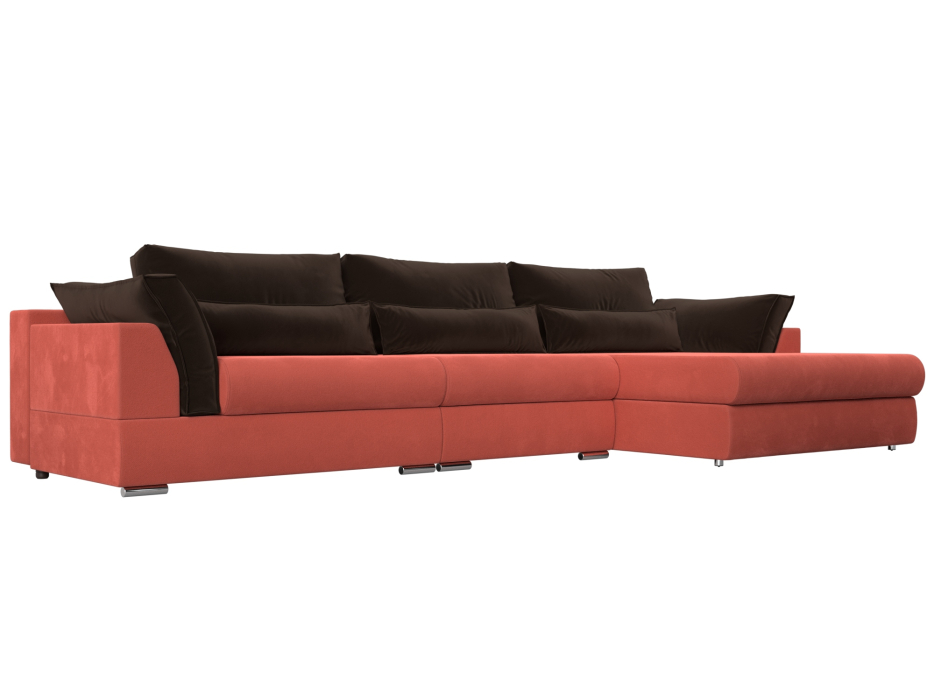 Отзывы о Столплит Угловой диван Пекин Long угол правый, НПБ, микровельвет Коралловый/Коричневый