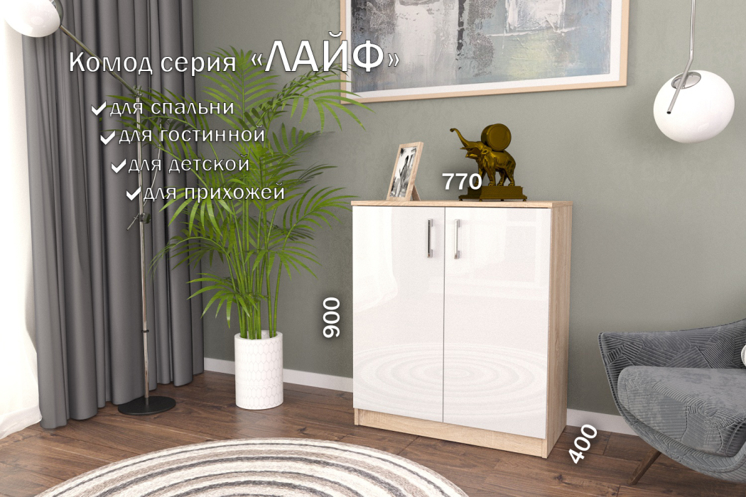 Комод Лайф 80*40*90 Дуб сонома (Белый)