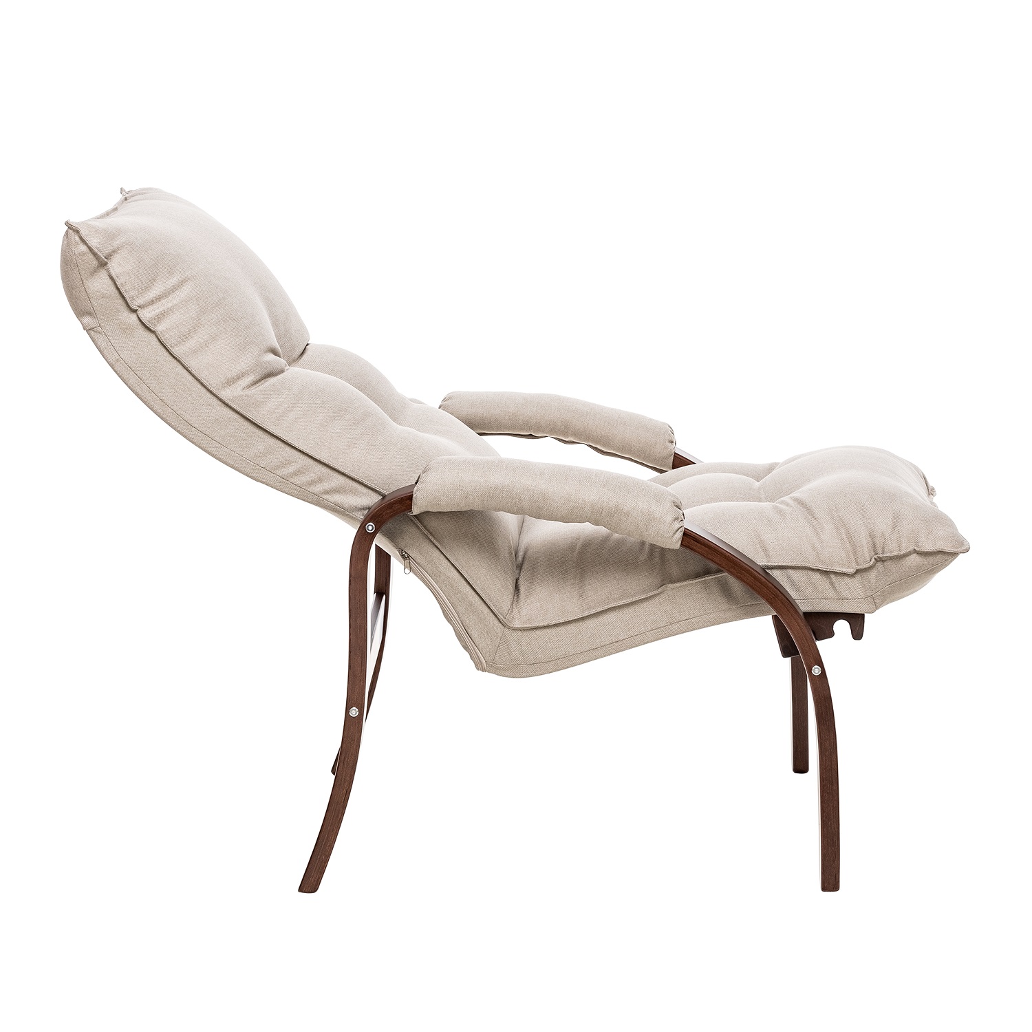 Мягкое кресло для отдыха дома и на даче Левада сделает комфортным интерьер комнаты модерн или хай-тек. Стильные кресла трансформеры из гнутоклееной коллекции мягкой мебели Leset имеют характерный силуэт, функциональны и компактны, поэтому популярны. Кресло-стул с подлокотниками и уютным сиденьем уместно в спальне, гостиной, прихожей, на балконе, в закрытой дачной беседке. У основания кресло раскладное оснащено механизмом гребенка, за счет чего одним движением спинка переключается в 2 положения: сидя или полулежа. Этим модель напоминает шезлонг, но Левада Leset -полноценное интерьерное кресло для отдыха: современный дизайн, изящный деревянный каркас под итальянским лаком, велюровый чехол, наполнитель из эластичного пенополиуретана. Накладки на подлокотниках снимаются для чистки, приспинная подушка декорирована пуговицами. Эргономичное каркасное кресло раскладушка выдержит до 120 кг. Регулируемое кресло позволит расслабиться как на диване, это чудесный подарок в новую квартиру друзьям.
