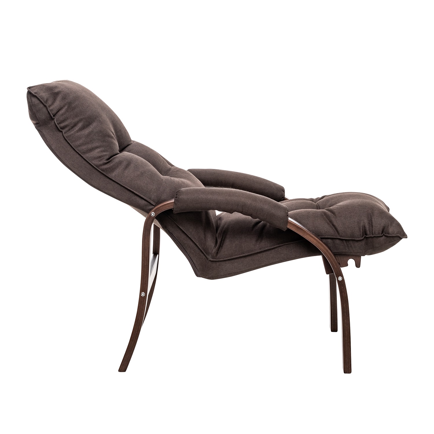 Мягкое кресло для отдыха дома и на даче Левада сделает комфортным интерьер комнаты модерн или хай-тек. Стильные кресла трансформеры из гнутоклееной коллекции мягкой мебели Leset имеют характерный силуэт, функциональны и компактны, поэтому популярны. Кресло-стул с подлокотниками и уютным сиденьем уместно в спальне, гостиной, прихожей, на балконе, в закрытой дачной беседке. У основания кресло раскладное оснащено механизмом гребенка, за счет чего одним движением спинка переключается в 2 положения: сидя или полулежа. Этим модель напоминает шезлонг, но Левада Leset -полноценное интерьерное кресло для отдыха: современный дизайн, изящный деревянный каркас под итальянским лаком, велюровый чехол, наполнитель из эластичного пенополиуретана. Накладки на подлокотниках снимаются для чистки, приспинная подушка декорирована пуговицами. Эргономичное каркасное кресло раскладушка выдержит до 120 кг. Регулируемое кресло позволит расслабиться как на диване, это чудесный подарок в новую квартиру друзьям.