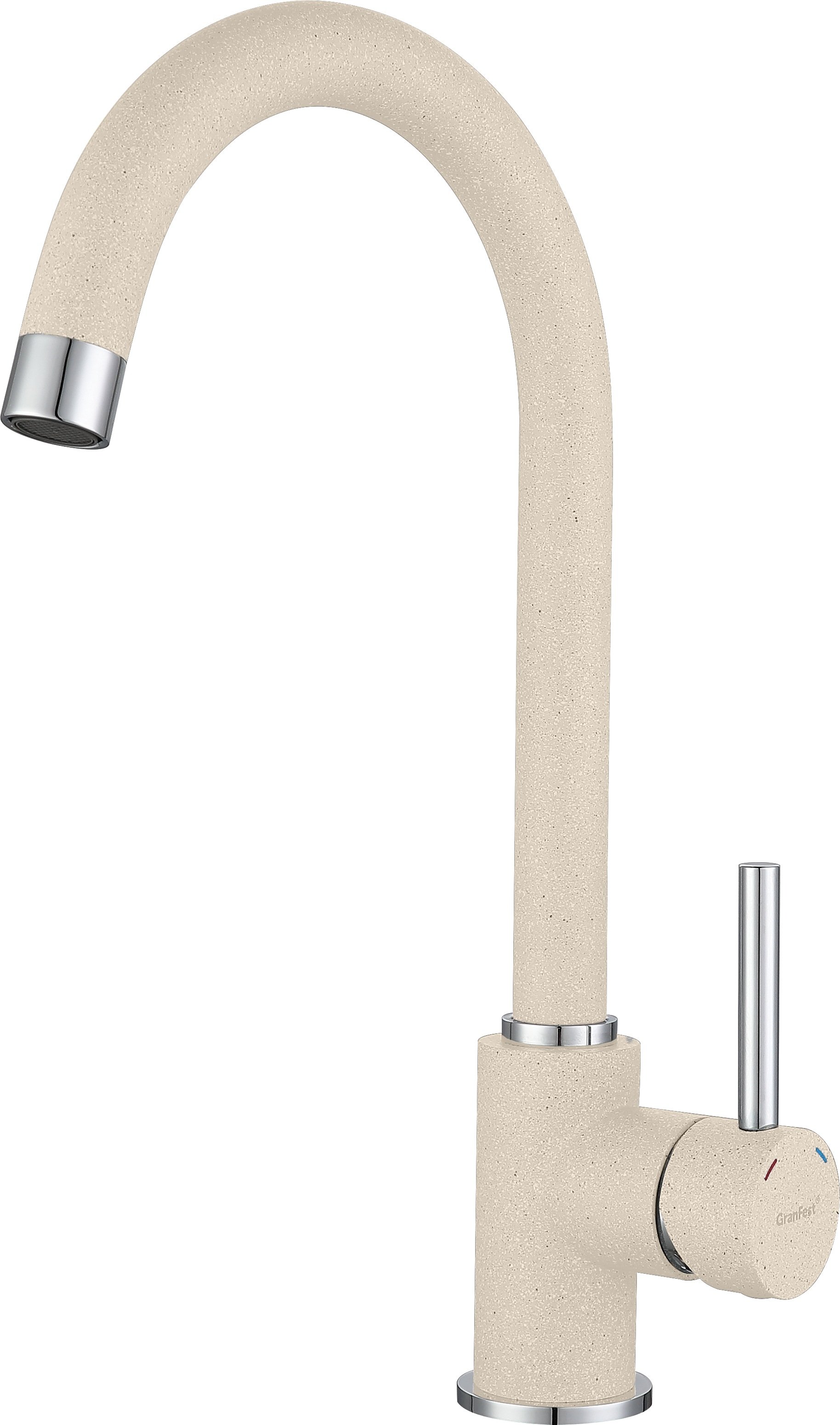 Современный, надёжный смеситель идеально подходит ко всем мойкам мраморной серии GranFest. 3650  - практичная модель с высоким U-образным изливом, изготовлен из долговечной латуни высокого качества. Напор и температура воды регулируется при помощи однорычажного механизма с бесшумным керамическим картриджем 35 мм.