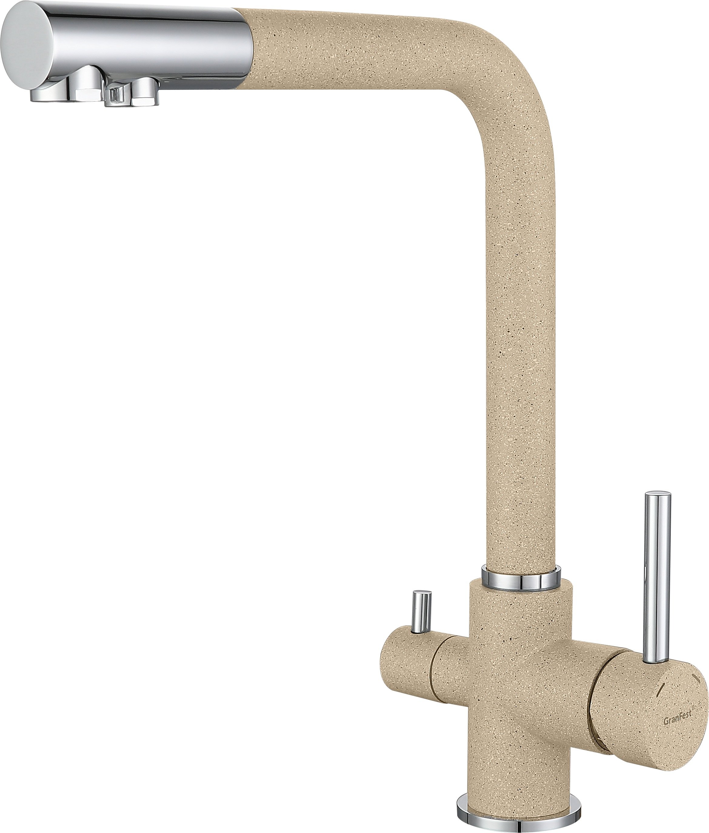 Смеситель GranFest для кухни Г-обр с краном питьевой воды (Бежевый песок)
