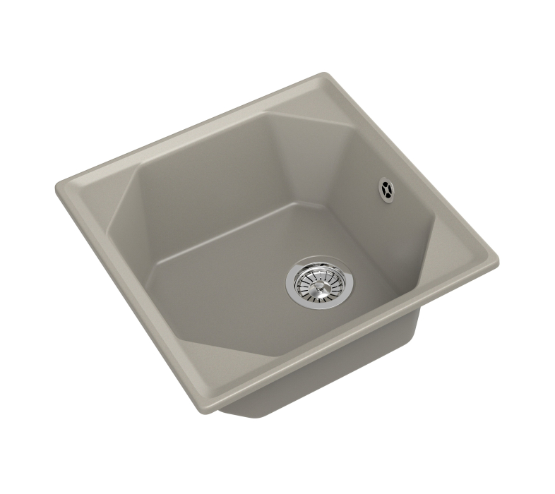 Мойку для кухни GranFest UNIQUE 500 легко отличить от любых других благодаря выраженной геометрии. Дизайнерскую модель отличают практичная чаша оригинальной формы размером 435*435 мм, и глубиной 200 мм, которая с легкостью позволит разместить внутри крупногабаритную посуду и промывать ее без лишних усилий. Мойка для кухни устанавливается в шкаф шириной 500 мм, поэтому место для нее найдется даже в небольшом кухонном гарнитуре. Готового отверстия под смеситель нет. Поэтому вы можете либо сделать его в удобном месте, либо установить смеситель прямо в столешницу. Модель GranFest выполнена из композитного материала, в основе которого лежит мраморная крошка и базальтовое волокно, что обуславливает повышенную прочность и долговечность. За счет скошенных, не острых углов чаши, и стойкому защитному покрытию ухаживать за чашей мойки одно удовольствие.