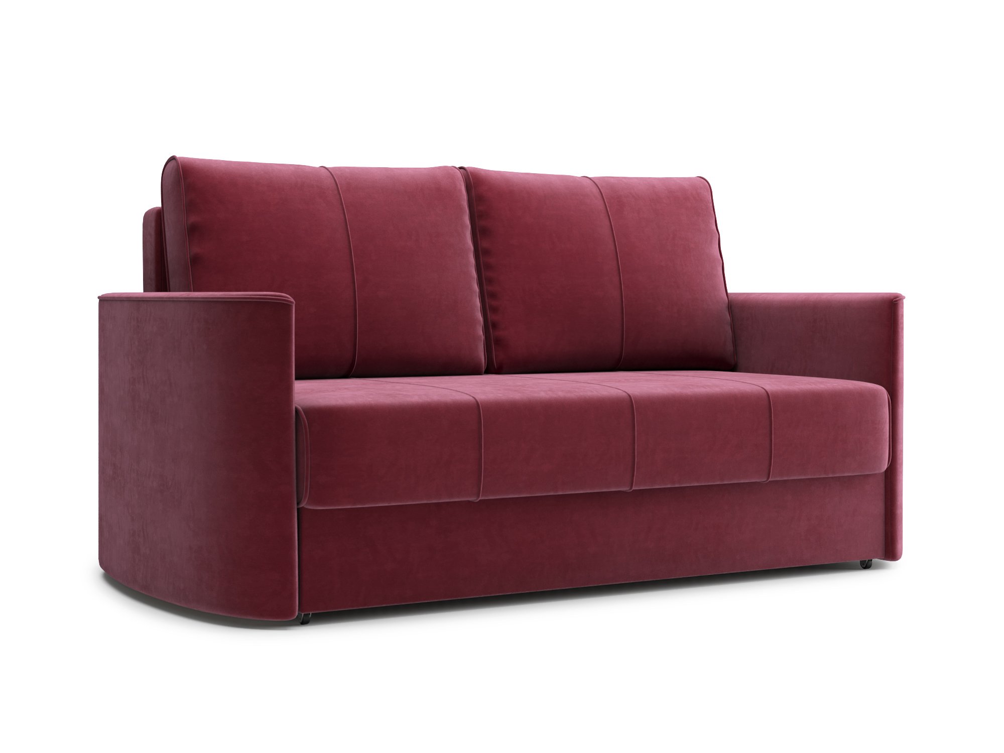 Диван прямой Амми двухместный, Трехсекционная еврокнижка, велюр (Бордовый)