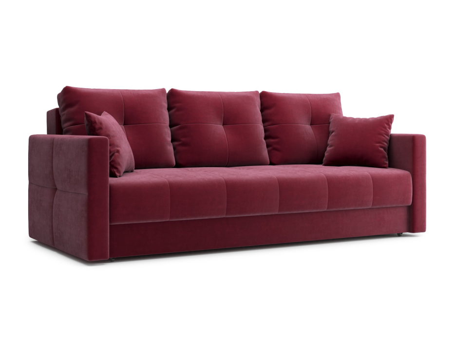 Диван-кровать прямой Эрик , еврокнижка, велюр (Бордовый)