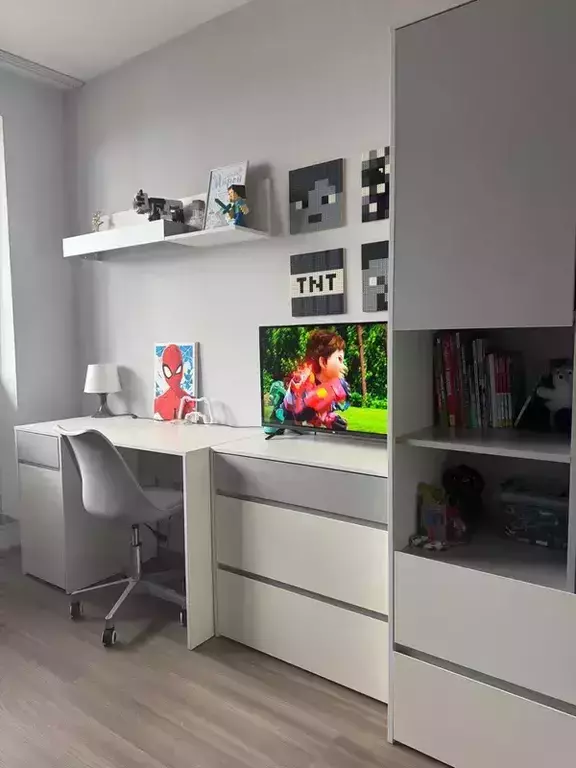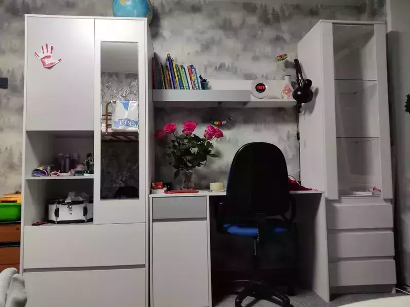 Конструктивно стол включает всестительную столешницу и тумбу под ней. Тумба стола имеет удобное распашное отделение с полкой внутри и выдвижным ящиком над ним на шариковых направляющих полного выдвижения. Универсальная сборка - сторону расположения тумбы Вы определяете сами. Полка расположена над столом и представляет из себя классическую открытую двухуровневую полку с задней панелью. Полка позволит разместить молодёжные аксессуары - знаковые мелочи, подчёркивающие индивидуальность подростка. Шкаф оборудован горизонтальной штангой для одежды на плечиках за дверкой с одной стороны. С другой три полки, верхние две за распашной дверкой. В нижней части шкаф располагат двумя выдвижными ящиками на шариковых направляющих полного выдвижения обеспечивают длительную и тихую эксплуатацию. На внутренней стороне дверки отделения с штангой расположено зеркало. Шкаф для одежды Торонто 13.333 собирается на любую сторону, что позволяет расширить возможности по расстановке мебели. Распашные двери шкафа на четырёхшарнирных петлях без доводчиков. Отсутствие лицевой фурнитуры и открывание фасадов за край - не только стилевое, но функциональное решение. Так мебель занимает меньше места и дает возможность проходить вплотную с фасадом без риска зацепиться за ручку или травмироваться. Базовый белый цвет, сочетаясь с акцентным серым, создаёт нейтральную основу интерьера, чтобы подчеркнуть личные вещи и аксессуары. Корпуса и фасады мебели изготовлены из экологически чистой ламинированной ДСП 16 мм, торцы окромлены ПХВ плёнкой 0,4 мм. В производстве молодёжной Торонто использованы качественные материалы и фурнитура - можно разрабатывать проект на весь период обучения. Поставляется рабочий стол с полкой и шкафом для одежды Торонто в разобранном виде, надёжно упакованной в гофрокартон, с приложенной подробной инструкцией по сборке.