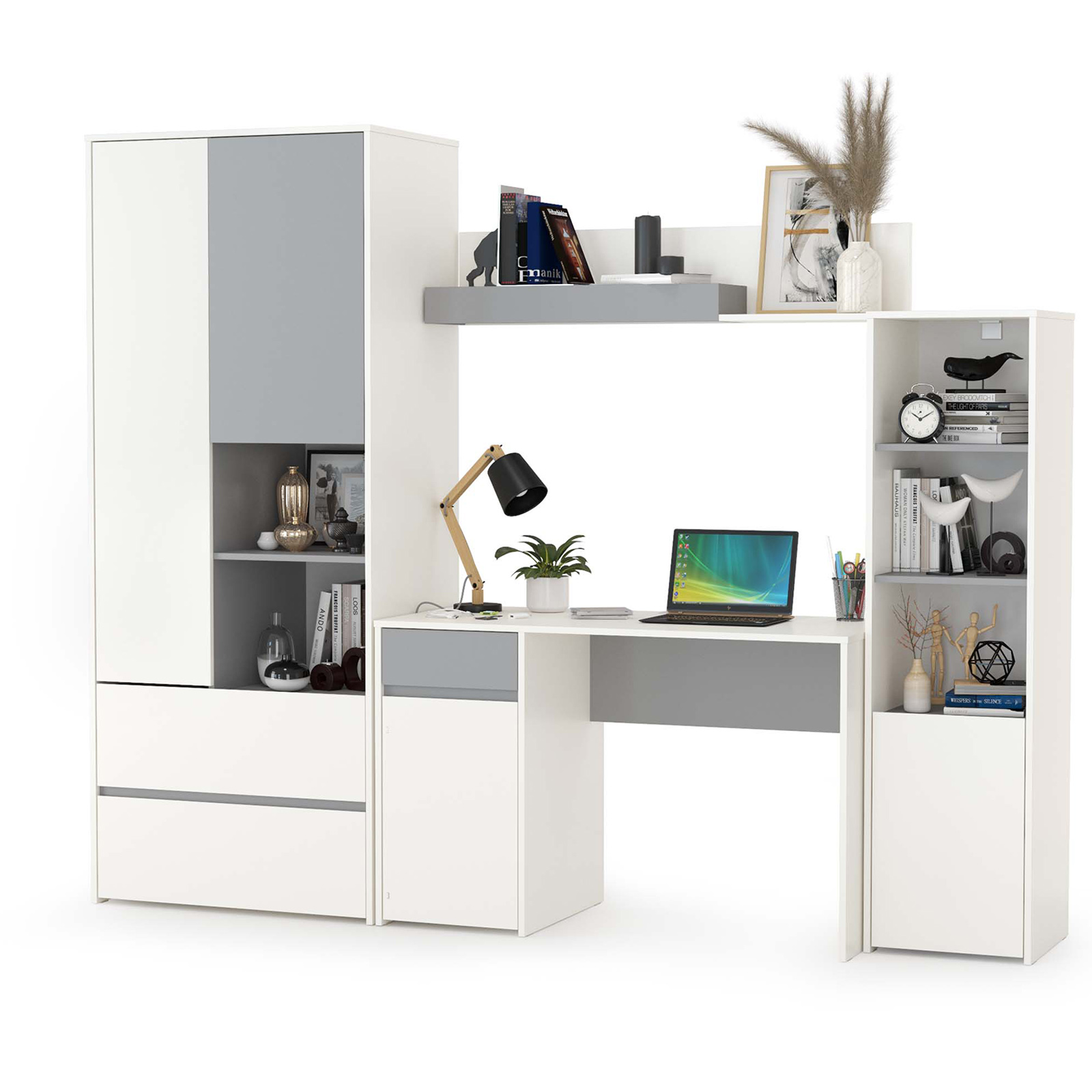 Комплектация состоит из стола письменного с открытой полочки над ним, шкафа для одежды и стеллажа. Шкаф оборудован горизонтальной штангой для одежды на плечиках за дверкой с одной стороны. С другой три полки, верхние две за распашной дверкой. В нижней части шкаф располагат двумя выдвижными ящиками на шариковых направляющих полного выдвижения обеспечивают длительную и тихую эксплуатацию. На внутренней стороне дверки отделения с штангой расположено зеркало. Шкаф для одежды Торонто 13.333 собирается на любую сторону, что позволяет расширить возможности по расстановке мебели. Распашные двери шкафа на четырёхшарнирных петлях без доводчиков. Конструктивно стол включает всестительную столешницу и тумбу под ней. Тумба стола имеет удобное распашное отделение с полкой внутри и выдвижным ящиком над ним на шариковых направляющих полного выдвижения. Универсальная сборка - сторону расположения тумбы Вы определяете сами. Полка расположена над столом и представляет из себя классическую открытую двухуровневую полку с задней панелью. Полка позволит разместить молодёжные аксессуары - знаковые мелочи, подчёркивающие индивидуальность подростка. Стеллаж комбинированный включает - сверху три открытые полки и снизу - полку за распашной дверкой. В комплектации 2 единицы. Универсальная сборка - сторону открывания дверцы стеллажа - Вы определяете сами. Отсутствие лицевой фурнитуры и открывание фасадов за край - не только стилевое, но функциональное решение. Так мебель занимает меньше места и дает возможность проходить вплотную с фасадом без риска зацепиться за ручку или травмироваться. Базовый белый цвет, сочетаясь с акцентным серым, создаёт нейтральную основу интерьера, чтобы подчеркнуть личные вещи и аксессуары. Корпуса и фасады мебели изготовлены из экологически чистой ламинированной ДСП 16 мм, торцы окромлены ПХВ плёнкой 0,4 мм. В производстве молодёжной Торонто использованы качественные материалы и фурнитура - можно разрабатывать проект на весь период обучения. Поставляется детская мебельная стенка Торонто № 4 в разобранном виде, надёжно упакованной в гофрокартон, с приложенной подробной инструкцией по сборке.