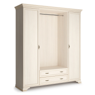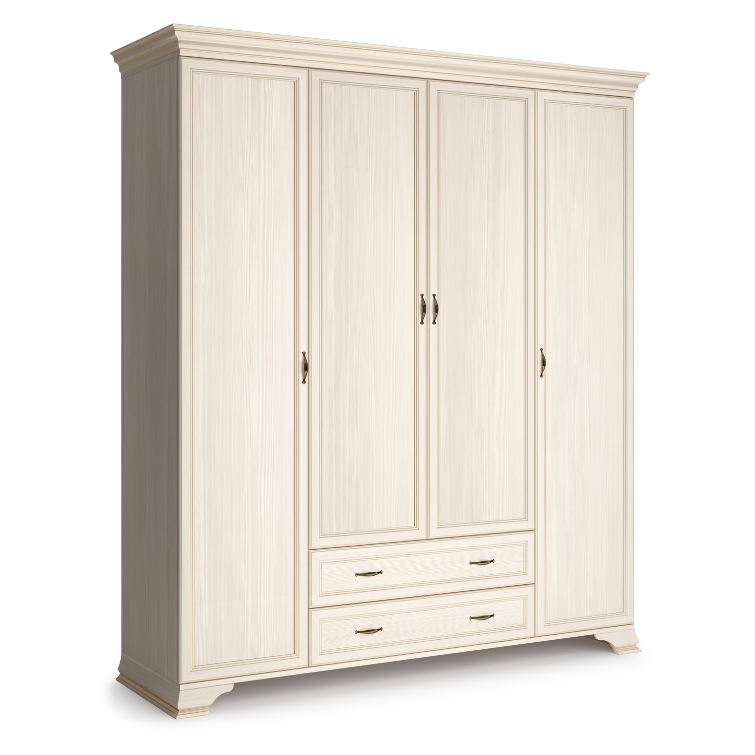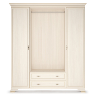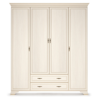 Шкаф распашной четырехдверный предназначен для вертикального и горизонтального хранения одежды. Штанга для вешалок входит в комплект. Шкаф имеет 2 выдвижных ящика для хранения белья и разных мелочей.