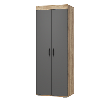 Новая модульная коллекция Прима в актуальном декоре дуб каньон/графит удачно впишется в современную обстановку Вашей квартиры и позволит организовать грамотное хранение вещей в гостиной и спальне. Приятный древесный оттенок корпуса гармонично дополнен матовым графитом, в котором исполнены фасады. Шкаф для одежды и белья Прима оснащен широкой продольной штангой для деликатной одежды на плечиках и двумя полками. Размеры: 80.2 х 217.6 х 51 Особенности