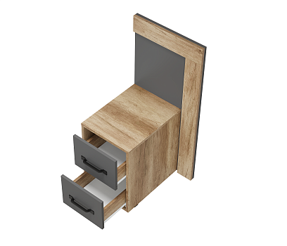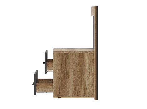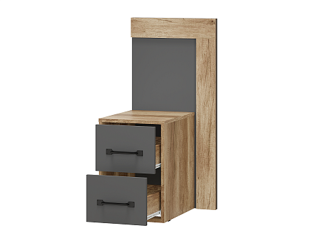 Новая модульная коллекция Прима в актуальном декоре дуб каньон/графит удачно впишется в современную обстановку Вашей квартиры и позволит организовать грамотное хранение вещей в гостиной и спальне. Приятный древесный оттенок корпуса гармонично дополнен матовым графитом, в котором исполнены фасады. Компактная прикроватная тумба имеет оригинальную форму и оснащена двумя выкатными ящиками на роликовых направляющих. Размеры: 45 х 95 х 45.8