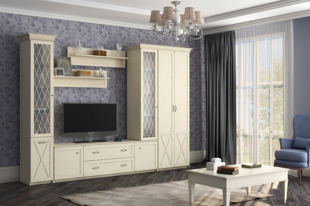 Мне из всех вариантов гостиных Бэлла этот под номером 4 понравился больше всех. Для нас он самый подходящий. В нём есть как закрытый шкаф, куда можно положить и повесить предметы одежды, так и витрины, где я расставила предметы декора и посуду. Я довольна покупкой гостиной Бэлла.