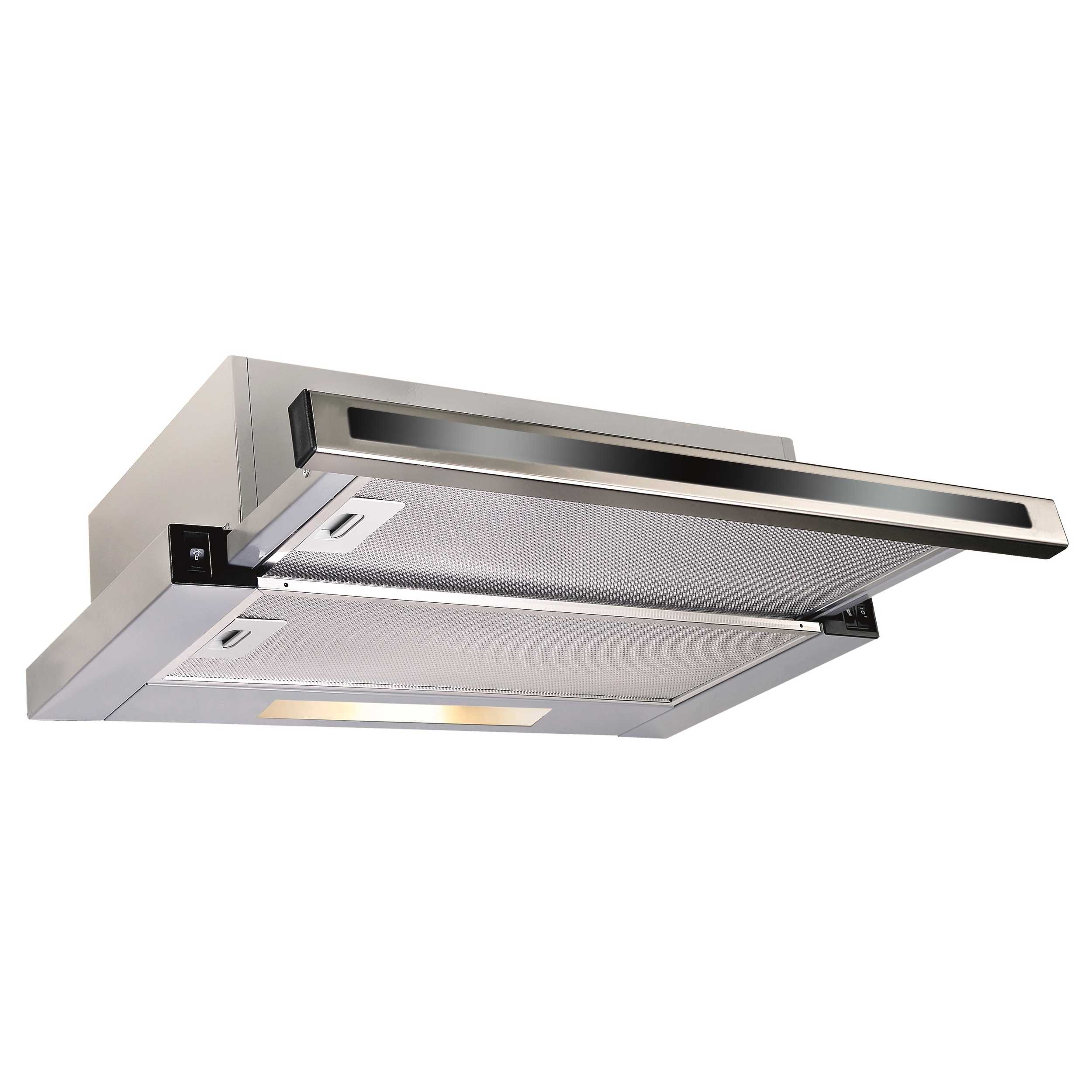 Встраиваемая с выдвижным экраном, ширина 50 см, 2 режима, у, клавишное управление, 600 м3/ч., алюминиевые жировые фильтры, LED освещение, панель - нерж сталь+черное стекло.
