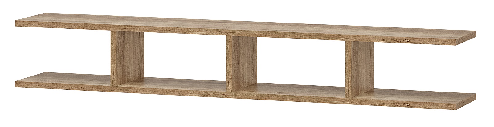 Новая модульная коллекция Прима в актуальном декоре дуб каньон/графит удачно впишется в современную обстановку Вашей квартиры и позволит организовать грамотное хранение вещей в гостиной и спальне. Приятный древесный оттенок корпуса гармонично дополнен матовым графитом, в котором исполнены фасады. Комплект для гостиной состоит из ТВ-тумбы, двух открытых навесных полок, шкафа-витрины со стеклом и шкафа для одежды и белья.