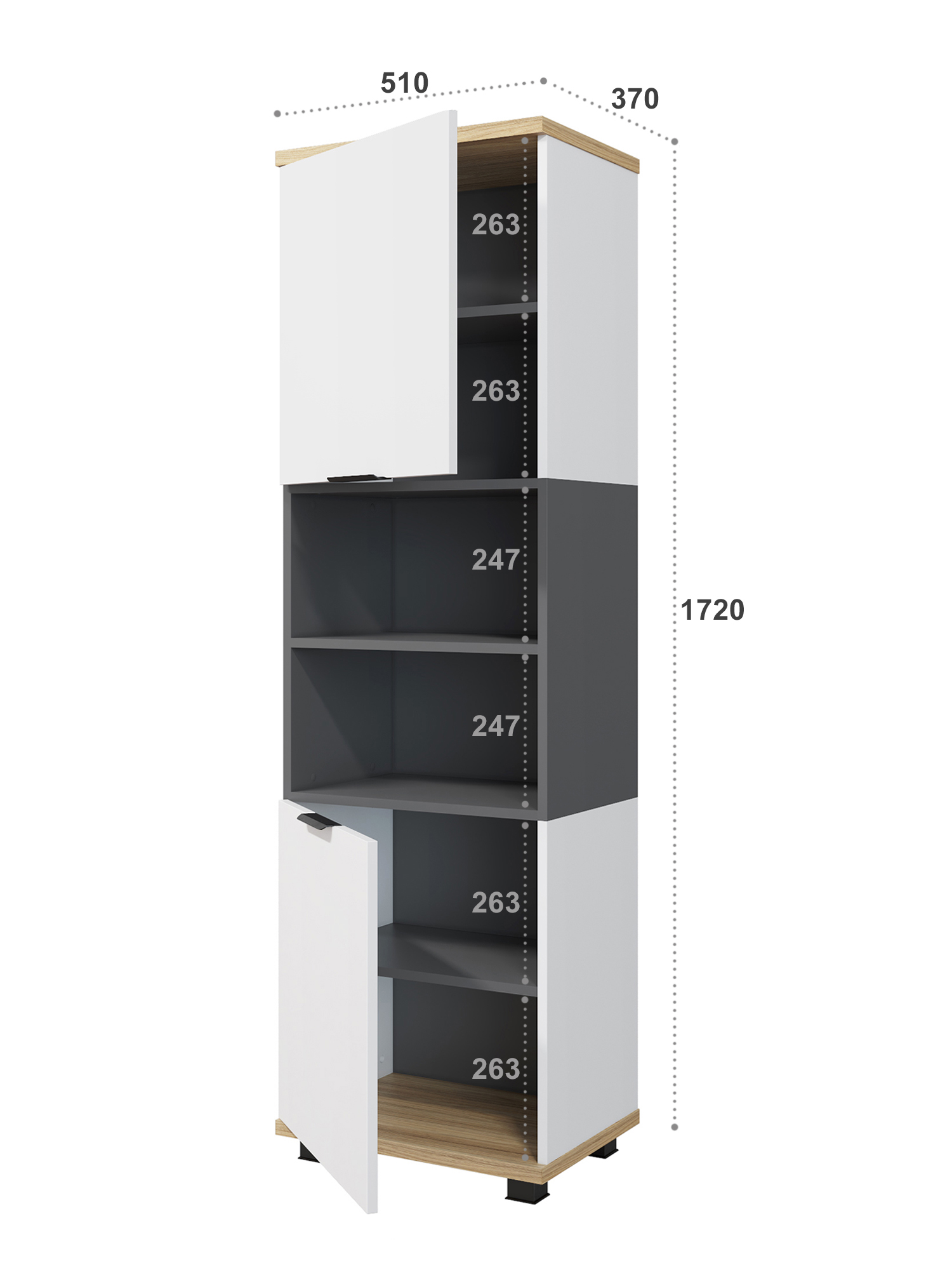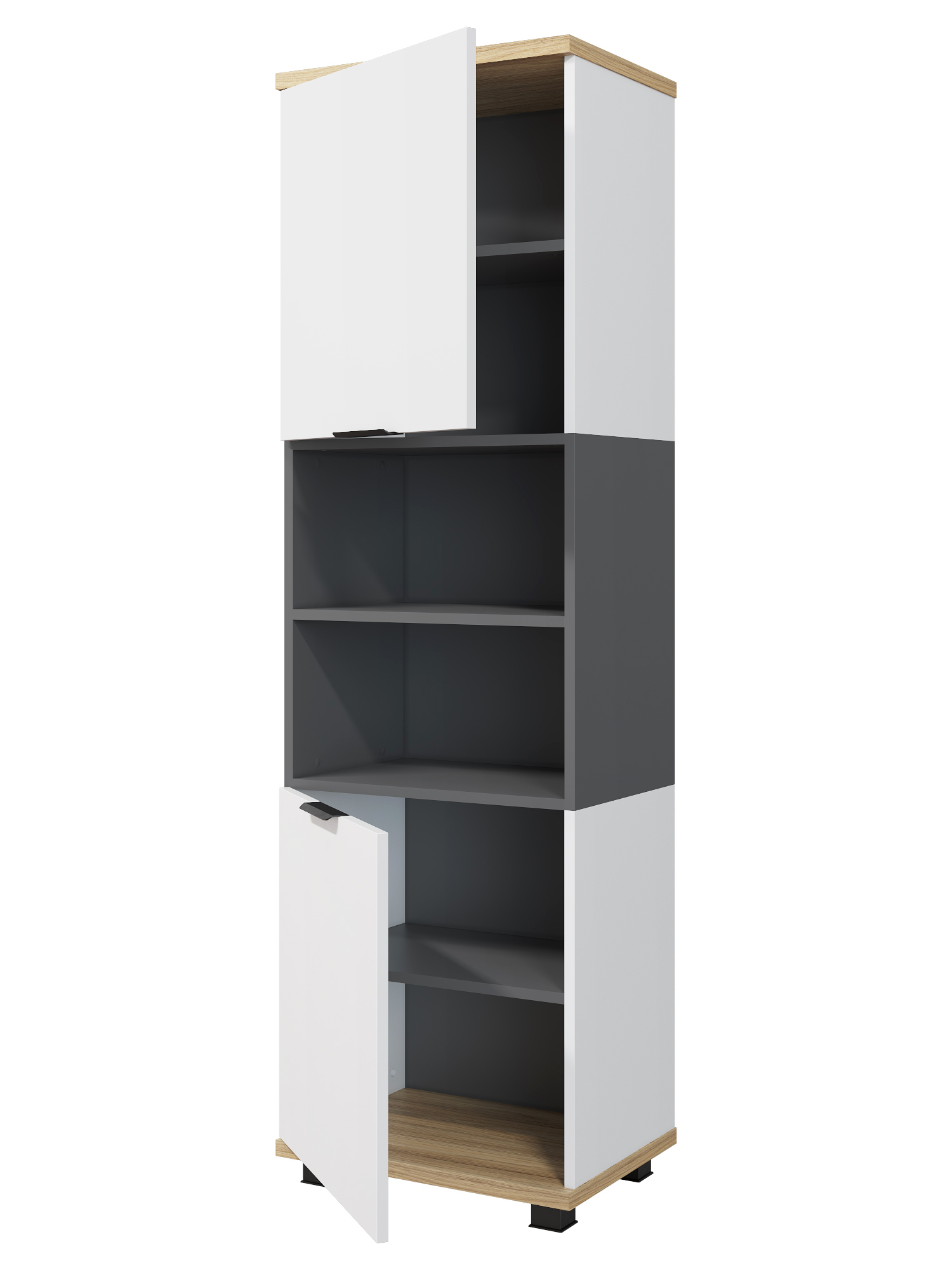 Стеллаж комбинированный Скайлайт СЛ-4К станет практичным дополнением рабочей зоны детской или подростковой комнаты. Лаконичный дизайн и сочетание трех цветов добавляет индивидуальности помещению. Изделие имеет две открытые полки на которых можно разместить необходимые и познавательные книги, документы и архивы, стопку бумаг и различные канцелярские принадлежности. За двумя дверцами скрываются еще четыре вместительные и глубокие полки. При сборке мебели фасады могут быть установлены как в "правом", так и в "левом" исполнении (необходимо по часовой стрелке развернуть фасады изделия на 180 градусов и поменять их местами для зеркальной сборки). Корпус изготовлен из ЛДСП 16 мм, крышка и дно стеллажа ЛДСП 25 мм, фасады из МДФ 16 мм. Фурнитура: петли с доводчиками, ручки металл. Высота опоры 50 мм. Важная информация. Мебель доставляется в разобранном виде, в упаковках.