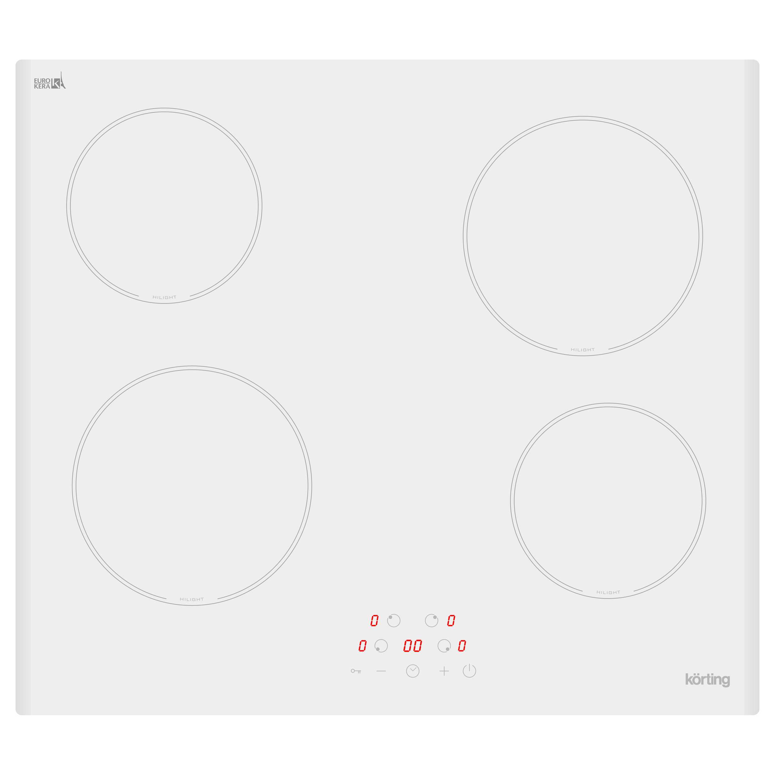 Стеклокерамика, ширина 60см, сенсорное управление, 4 зоны нагрева, таймер, LED индикация для каждой зоны, индикация остаточного тепла, автоматическое отключение, функция ""Защита детей"", цвет - ,белый, дизайн рамки - 2 скошенных края.