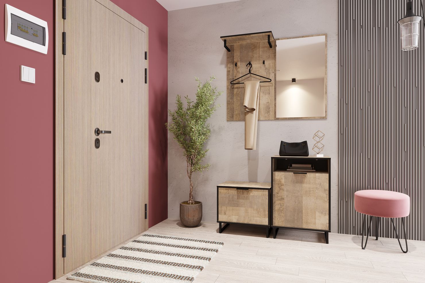 Навесная вешалка для прихожей с тремя крючками и шляпной полкой из коллекции Фолк.