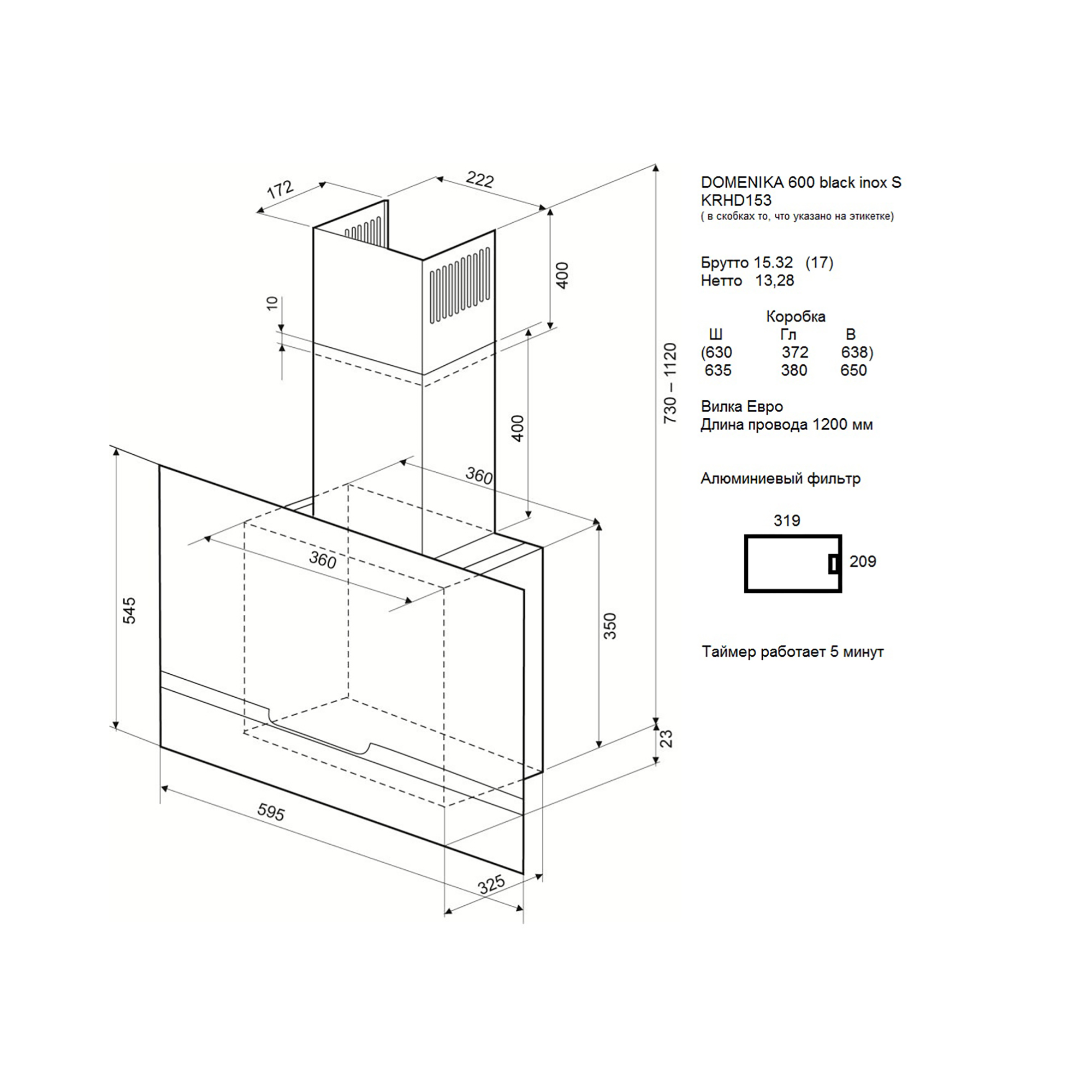 Отзывы о Столплит Вытяжка кухонная KRONA DOMENIKA 600 BLACK/INOX S