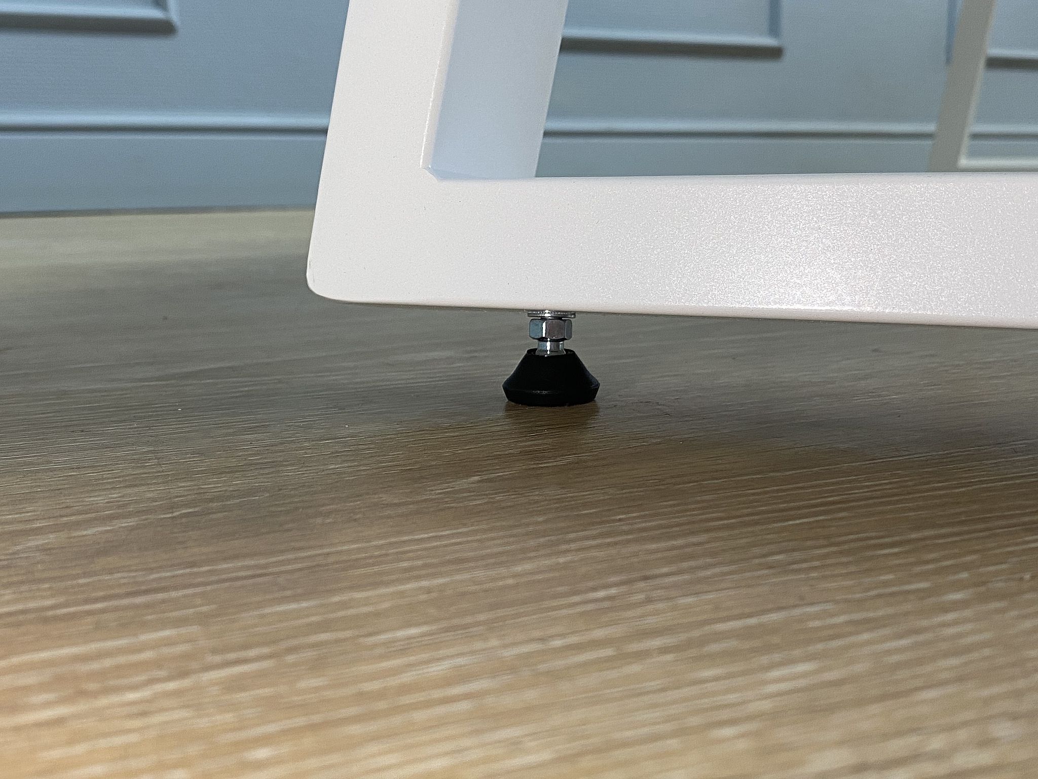 * стол очень устойчивый, дополнительно оснащен регулировочными винтами чтобы, например, выровнять стол при попадании опоры в стык плитки