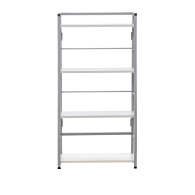 Соберите стеллаж за 10 минут без дополнительного инструмента! Он имеет устойчивый металлический каркас, оборудован полками из ЛДСП толщиной 16 мм и размерами (сверху вниз) 590х120, 590х150, 590х180, 590х210 мм. В высоте 10 мм заложено на регулируемую опору.