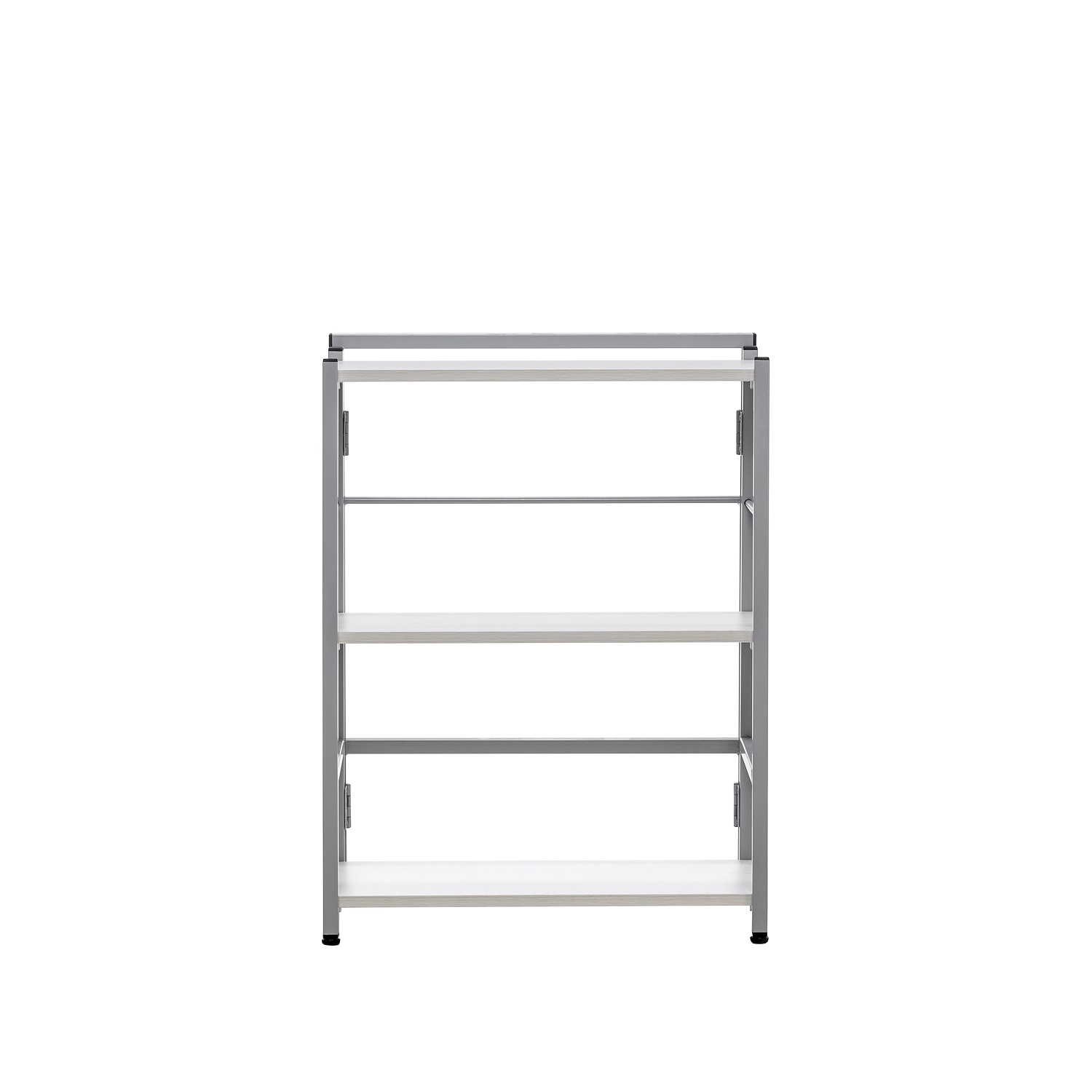 Соберите стеллаж за 10 минут без дополнительного инструмента! Он имеет устойчивый металлический каркас, оборудован полками из ЛДСП толщиной 16 мм и размерами (сверху вниз) 590х150, 590х180, 590х210 мм. В высоте 10 мм заложено на регулируемую опору.