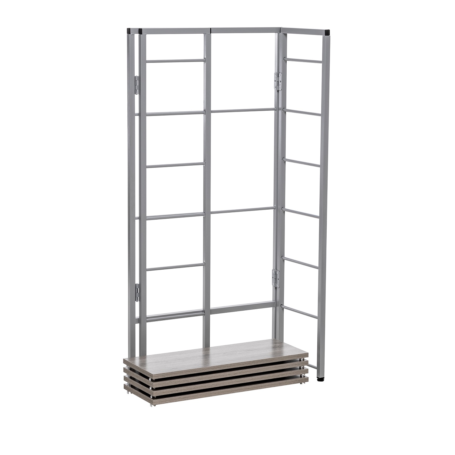 Соберите стеллаж за 10 минут без дополнительного инструмента! Он имеет устойчивый металлический каркас, оборудован полками из ЛДСП толщиной 16 мм и размерами полок 590х220 мм. В высоте 10 мм заложено на регулируемую опору.