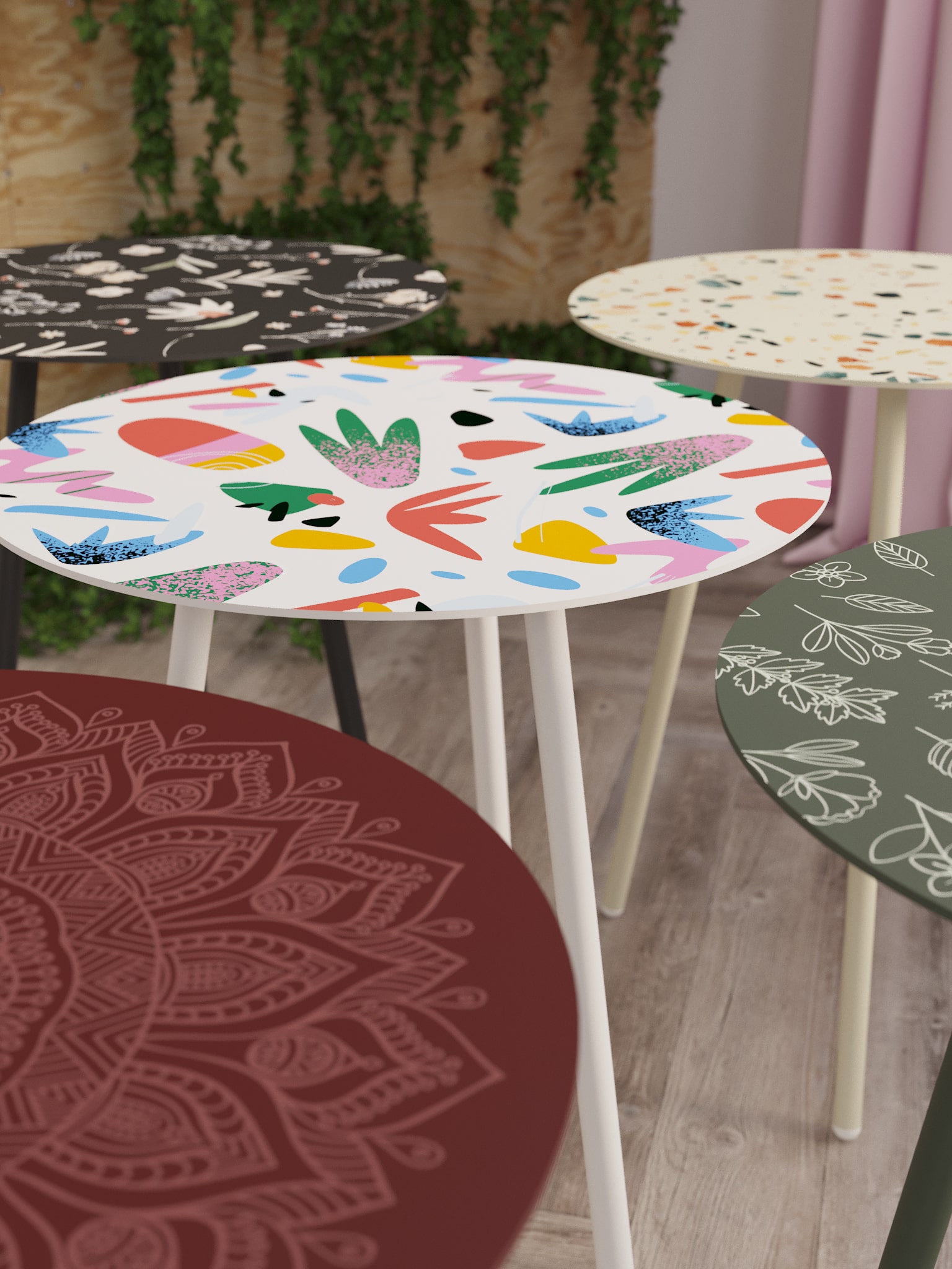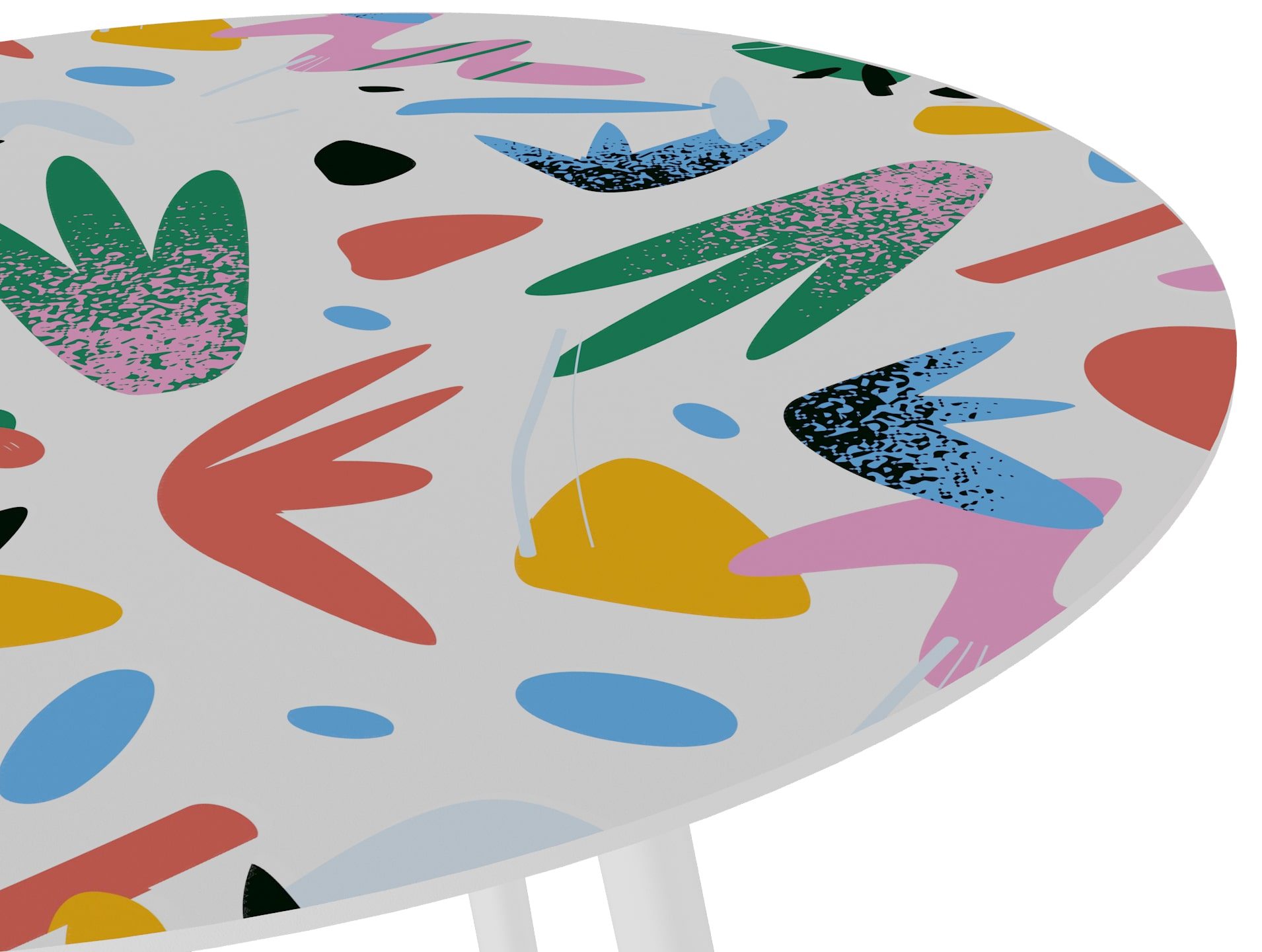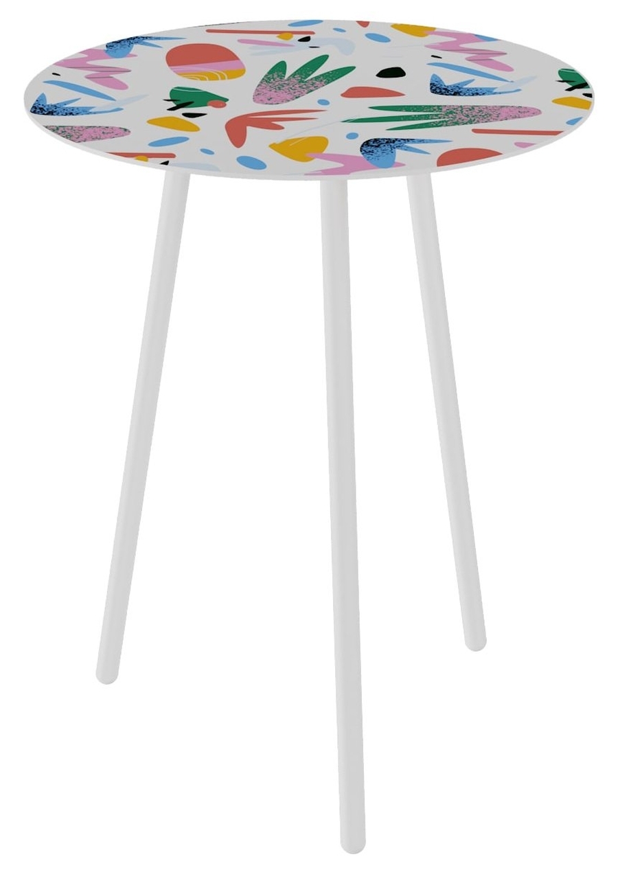 Журнальный столик «Стрэнд» выполнен в современном стиле, поэтому он станет отличным дополнением любого офисного и домашнего помещения, воплощая идею простоты и функциональности. Столик имеет лаконичный внешний вид. Столешница выполнена из металла с применением техники УФ-печати. Оригинальный рисунок приковывает взгляд, создавая яркий акцент. Ножки выполнены из прочного и надежного металла диаметром 16 мм. Габаритные размеры стола 350*350*450 мм.