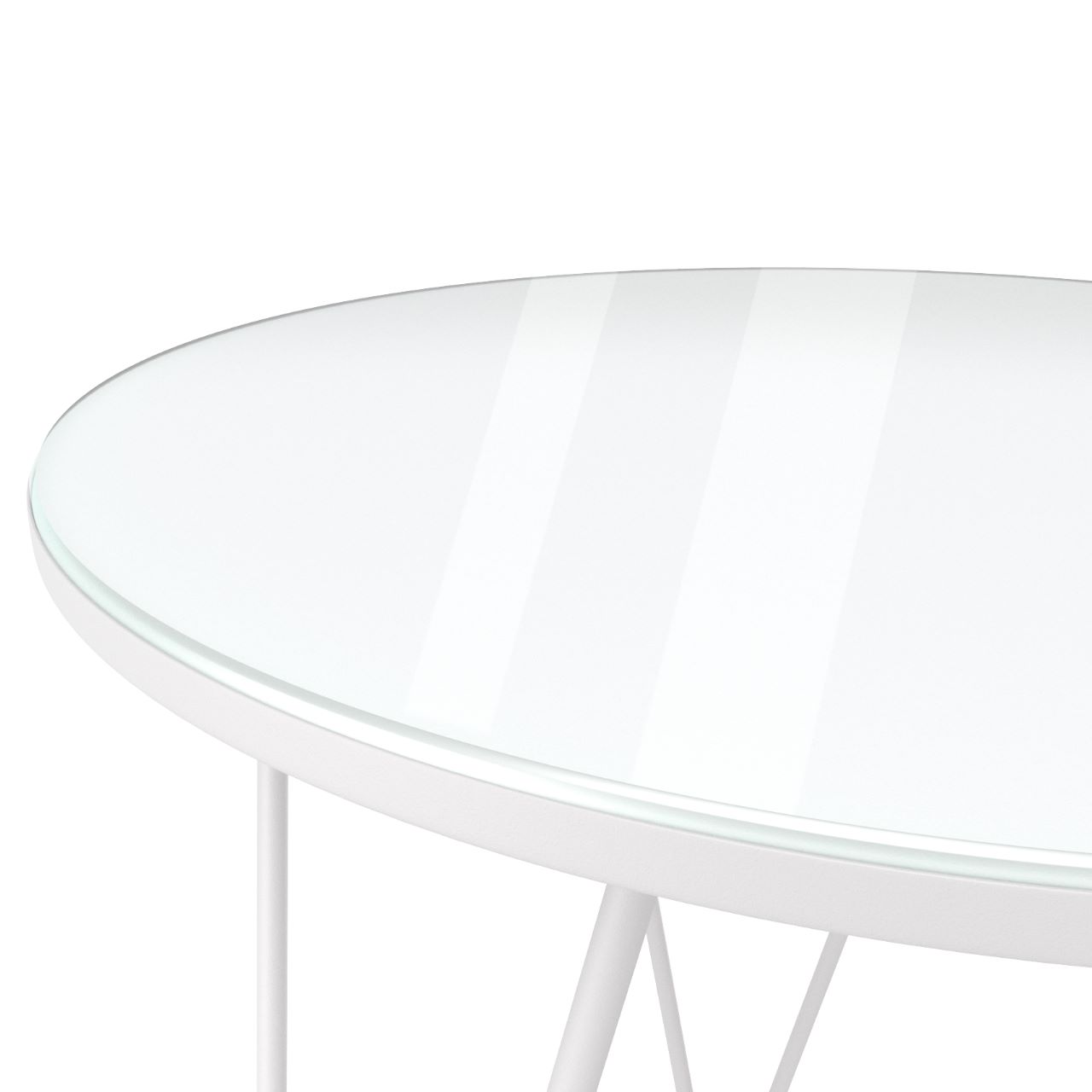 Металлический каркас окрашен порошковой краской, устойчивой к механическому воздействию. Столешница выполнена из толстого стекла (толщина стекла 5 мм.).