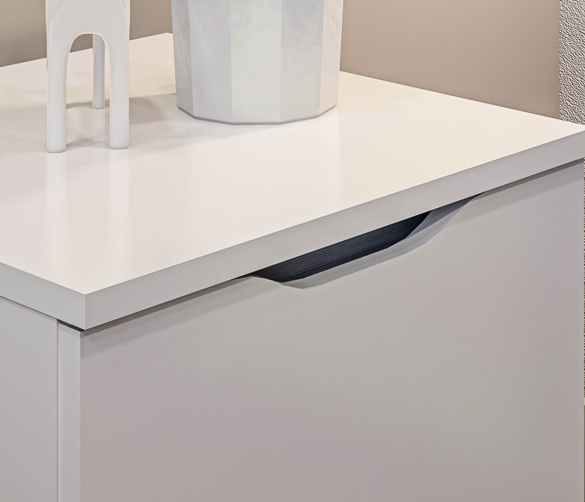 Тумба имеет компактные размеры: высота 532 мм, ширина 390 мм и глубина 393 мм, что позволяет ей идеально вписаться рядом с кроватью. Она предлагает удобное место для хранения предметов, которые хотите иметь под рукой во время сна.