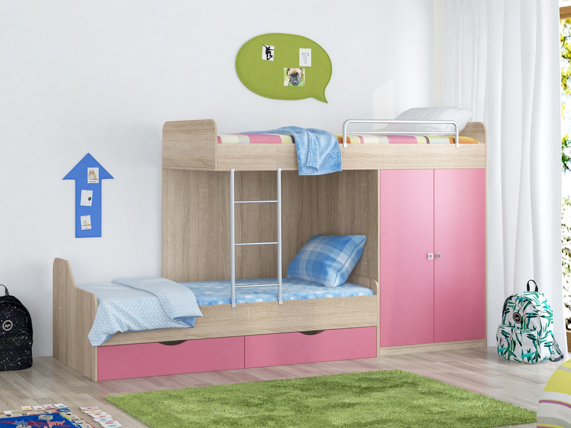 Кровать двухъярусная ДЕЛЬТА 18.04.01 (Дуб сонома) (Розовый)