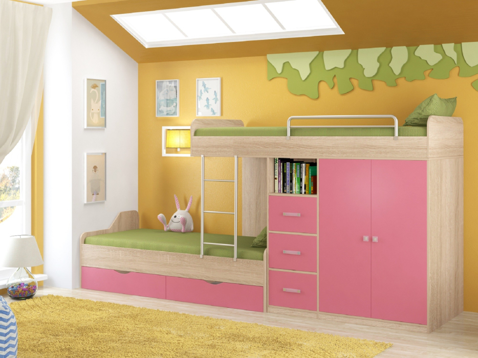 Отзывы о Столплит Кровать двухъярусная ДЕЛЬТА 18.04.02 (Дуб сонома) Розовый