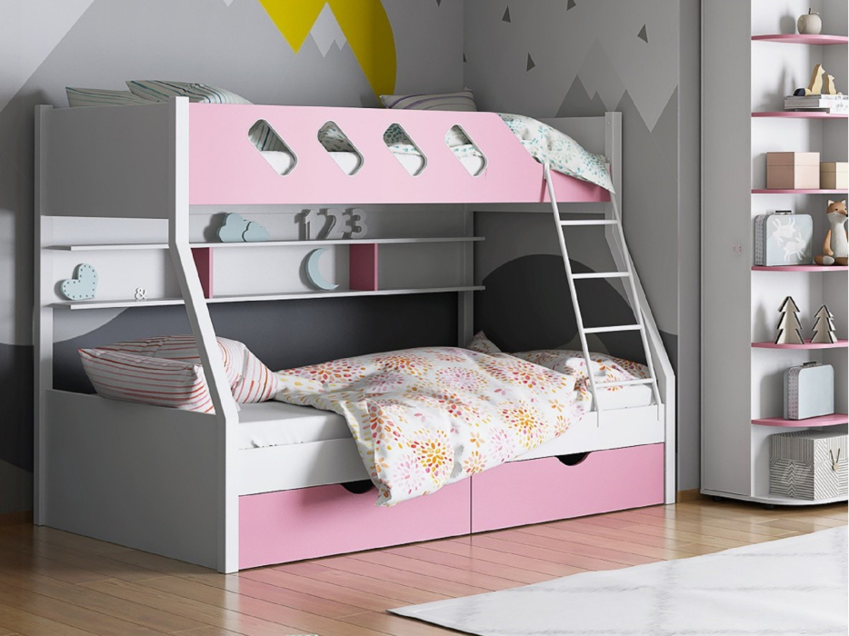 Кровать двухъярусная ДЕЛЬТА 20.02 (Белый) (Розовый)