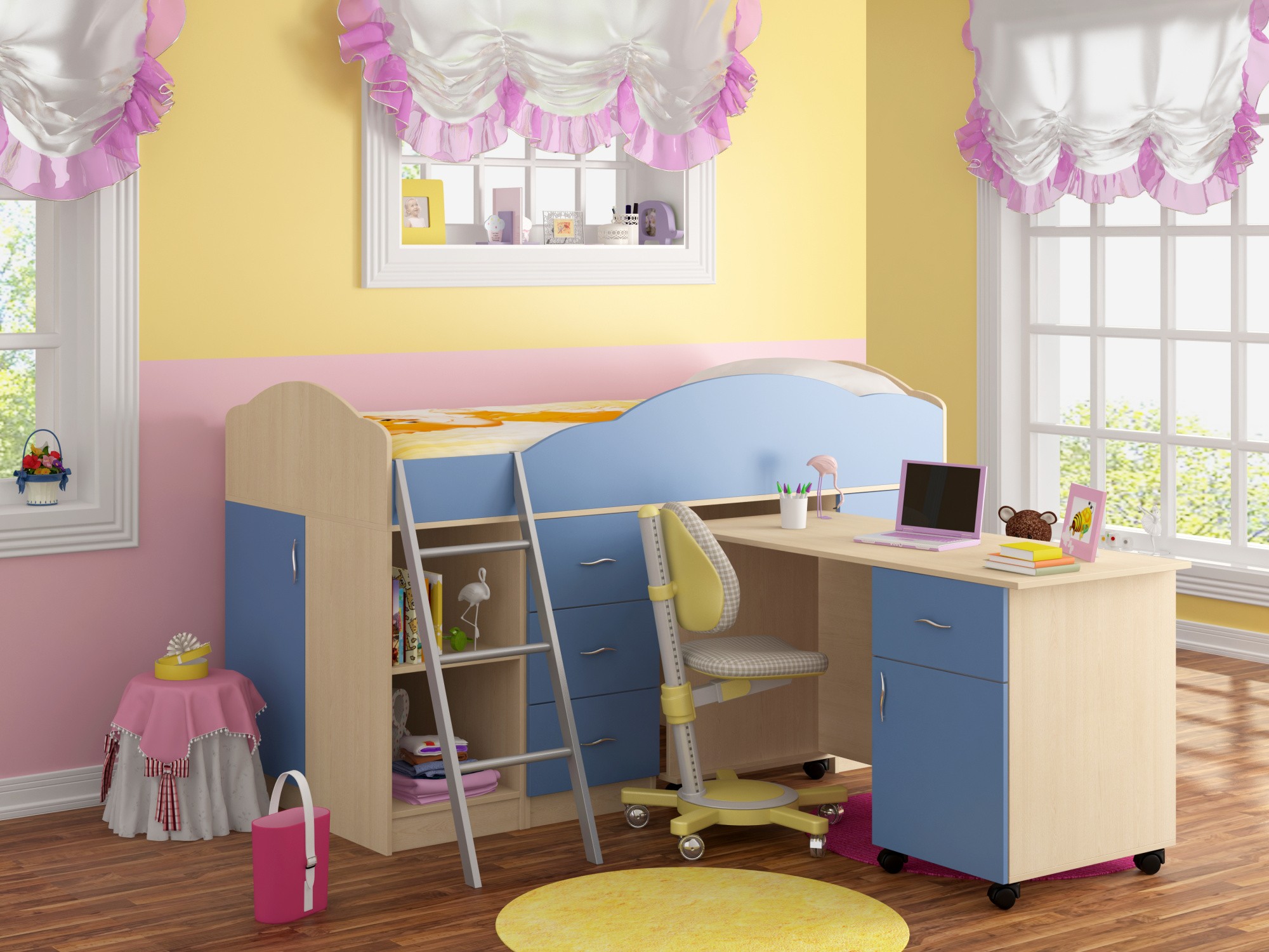 Отзывы о Столплит Кровать-чердак "Дюймовочка 5.2" (Дуб молочный) Голубой