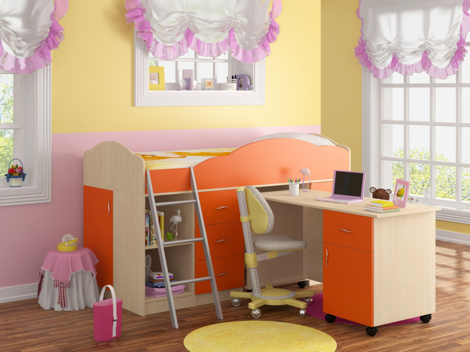 Отзывы о Столплит Кровать-чердак "Дюймовочка 5.2" (Дуб молочный) Оранжевый