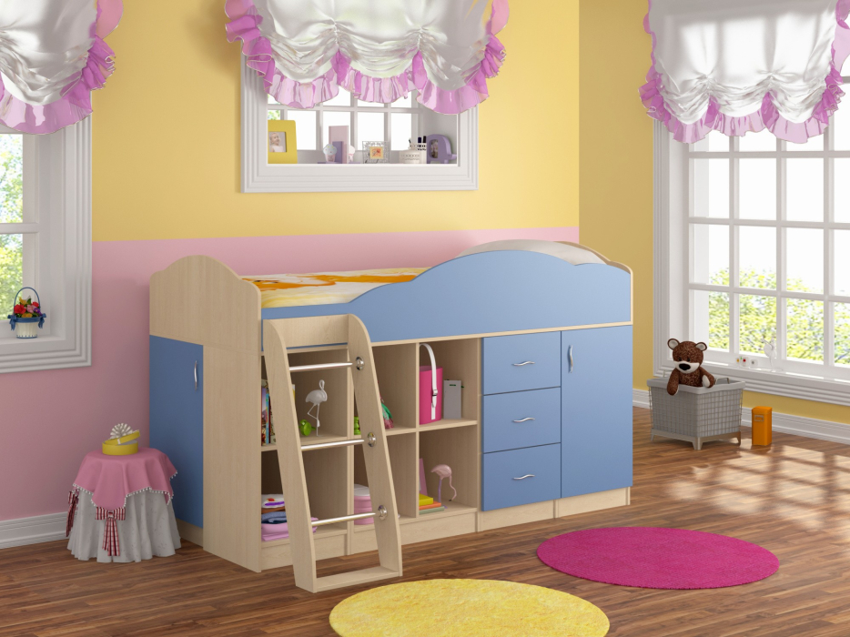 Отзывы о Столплит Кровать-чердак "Дюймовочка 5.4" (Дуб молочный) Голубой