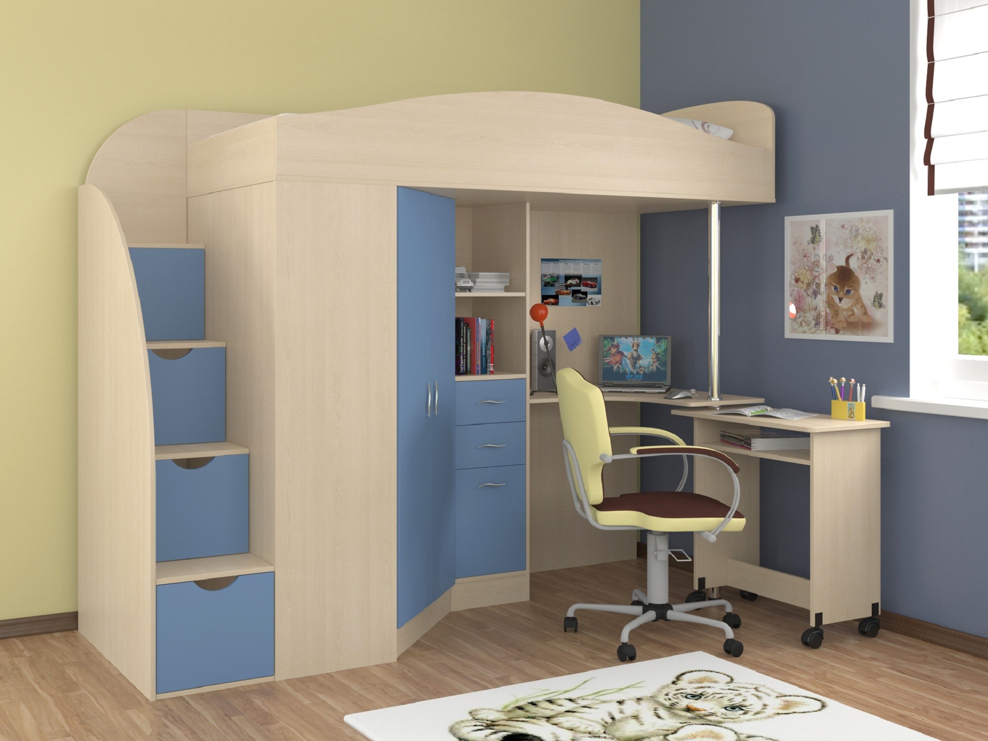 Комплект детской мебели – идеальный вариант для современной жилой комнаты вашего ребенка. Мебель изготавливается из высококачественного ЛДСП с безопасным кромлением всех деталей. Широкий спектр цветовых решений корпусов и фасадов позволит вам встроить нашу мебель в любой интерьер. Размер спального места 80*190.