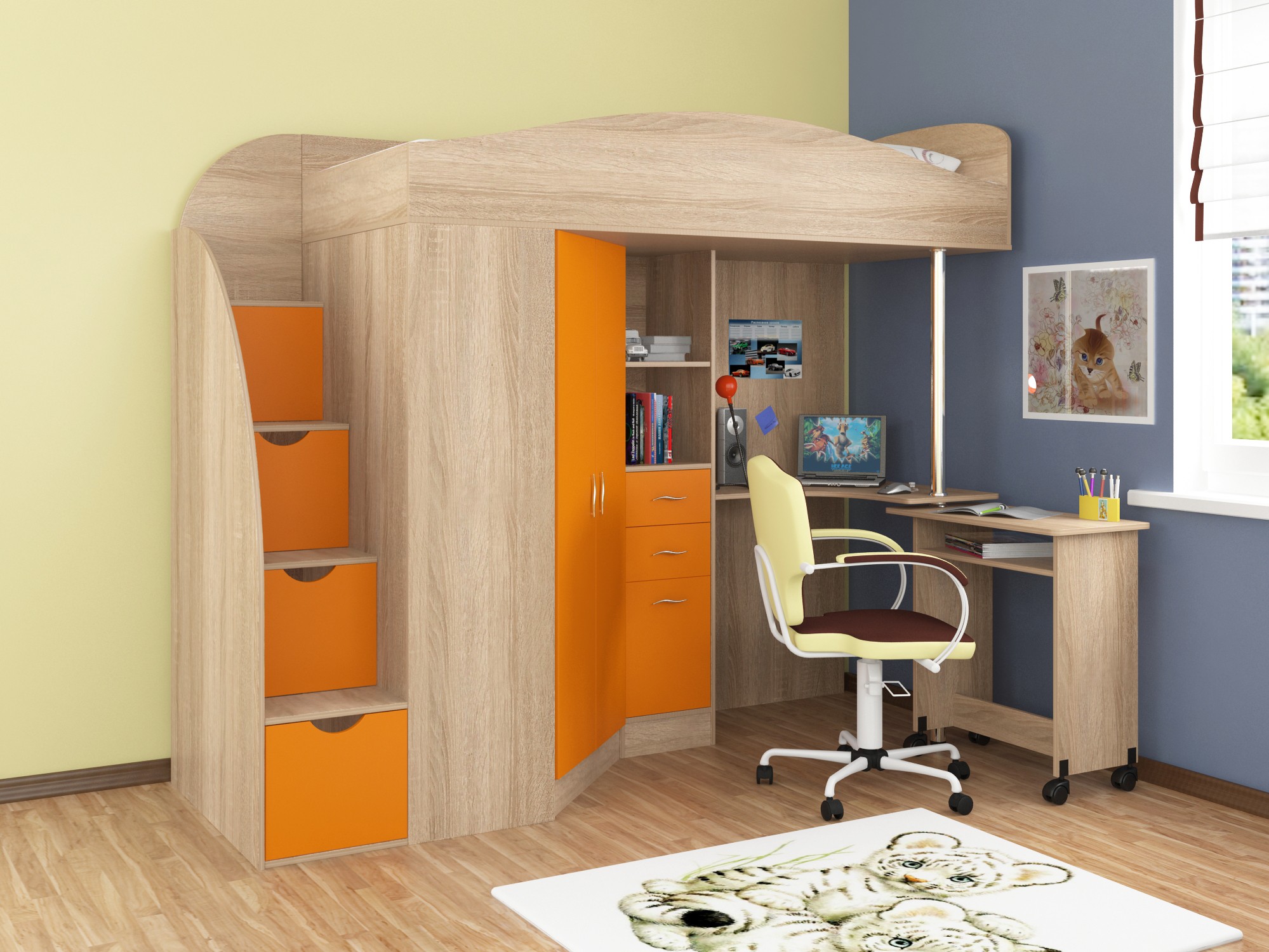 Отзывы о Столплит Кровать-чердак "Теремок 1 Гранд" Дуб сонома/Оранжевый