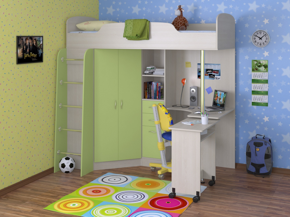 Отзывы о Столплит Кровать-чердак "Теремок 1" (Дуб молочный) Салатовый