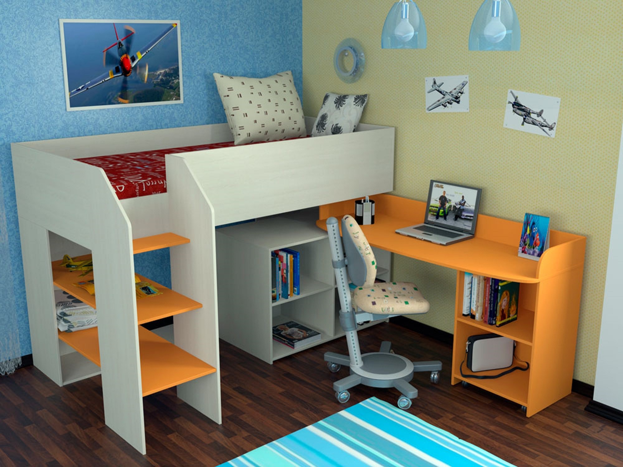 Комплект детской мебели – идеальный вариант для современной жилой комнаты вашего ребенка. Мебель изготавливается из высококачественного ЛДСП с безопасным кромлением всех деталей. Широкий спектр цветовых решений корпусов и фасадов позволит вам встроить нашу мебель в любой интерьер. Размер спального места 90*200.