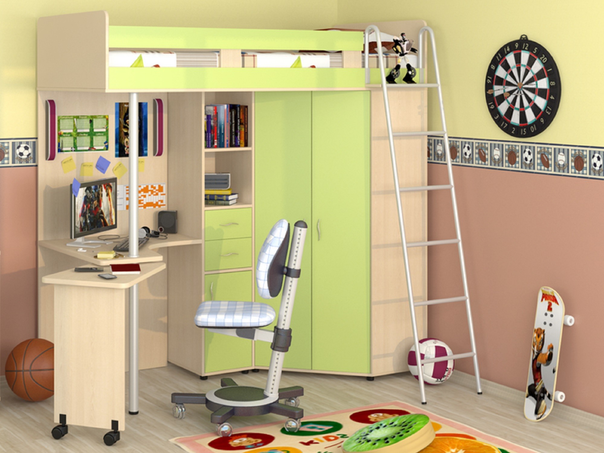 Отзывы о Столплит Кровать-чердак "Теремок М85" (Дуб молочный) Салатовый