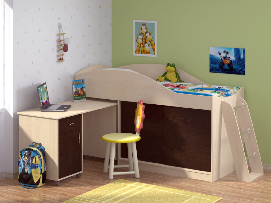 Комплект детской мебели – идеальный вариант для современной жилой комнаты вашего ребенка. Мебель изготавливается из высококачественного ЛДСП с безопасным кромлением всех деталей. Широкий спектр цветовых решений корпусов и фасадов позволит вам встроить нашу мебель в любой интерьер. Размер спального места 80*190.