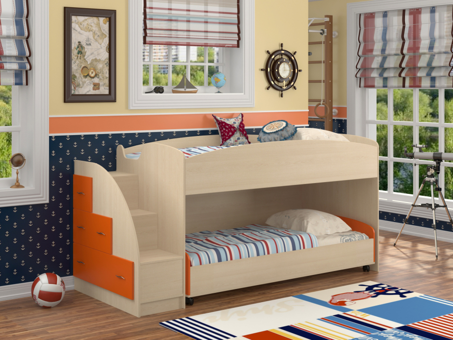 Кровать двухъярусная "Дюймовочка 4.2" (Дуб молочный) (Оранжевый)