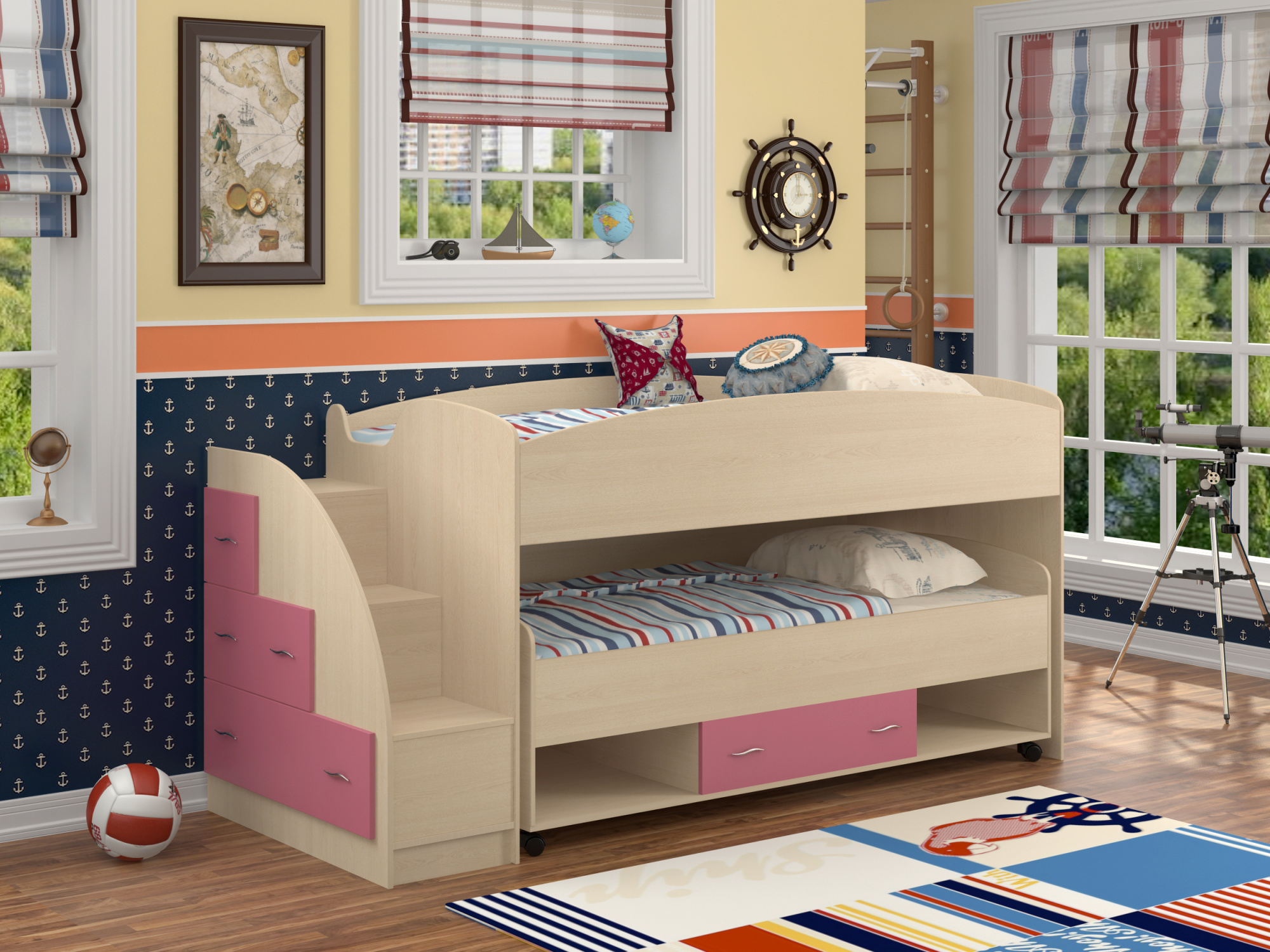 Отзывы о Столплит Кровать двухъярусная "Дюймовочка 4.3" (Дуб молочный) Розовый